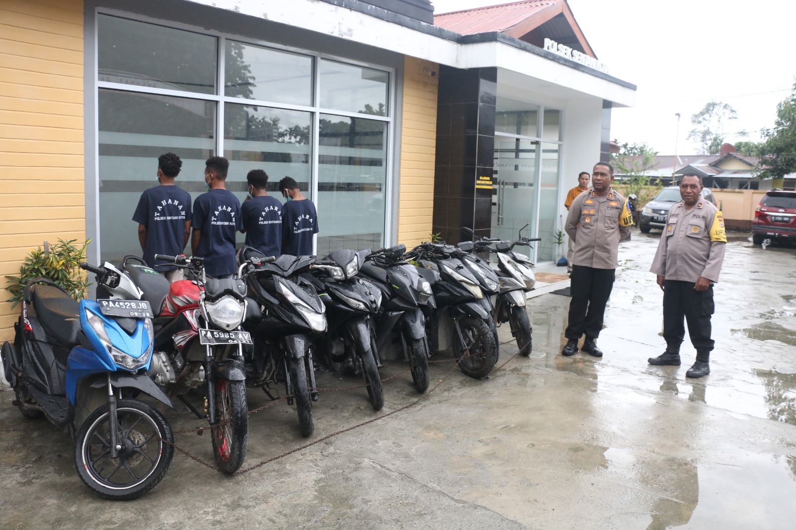 Dalam penanganan hukum, keempat tersangka akan dijerat dengan pasal 363 ayat (1) junto pasal 55 ayat 1 KUHP, dengan ancaman hukuman maksimal 7 tahun penjara. Sementara 8 unit sepeda motor yang diamankan termasuk Honda Beat, Yamaha X Ride, Yamaha Vixion, dan Honda Jupiter akan menjadi barang bukti dalam proses penyelidikan lebih lanjut. (Hopni AY)