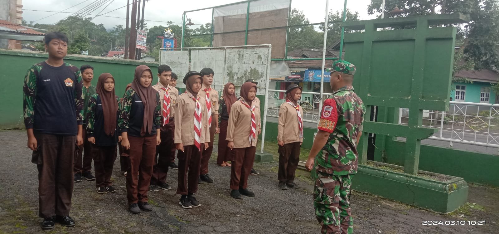BN News. Pemalang || Peraturan Baris Berbaris (PBB) telah menjadi bagian penting dalam latihan fisik dan kemiliteran, dan bukan hanya militer saja yang melakukan praktik ini. Serma Zaenal Babinsa Koramil 11/Belik Kodim 0711 Korem 071/Wijayakusuma baru-baru ini memberikan pelatihan PBB kepada 13 siswa SMA dan mengajarkan mereka teknik dasar dalam ujian PBB. Lebih dari sekadar latihan fisik, Serma Zaenal juga memberikan materi wawasan kebangsaan yang sangat penting untuk meningkatkan rasa cinta tanah air dan nasionalisme para siswa. minggu, 10/3/2024.