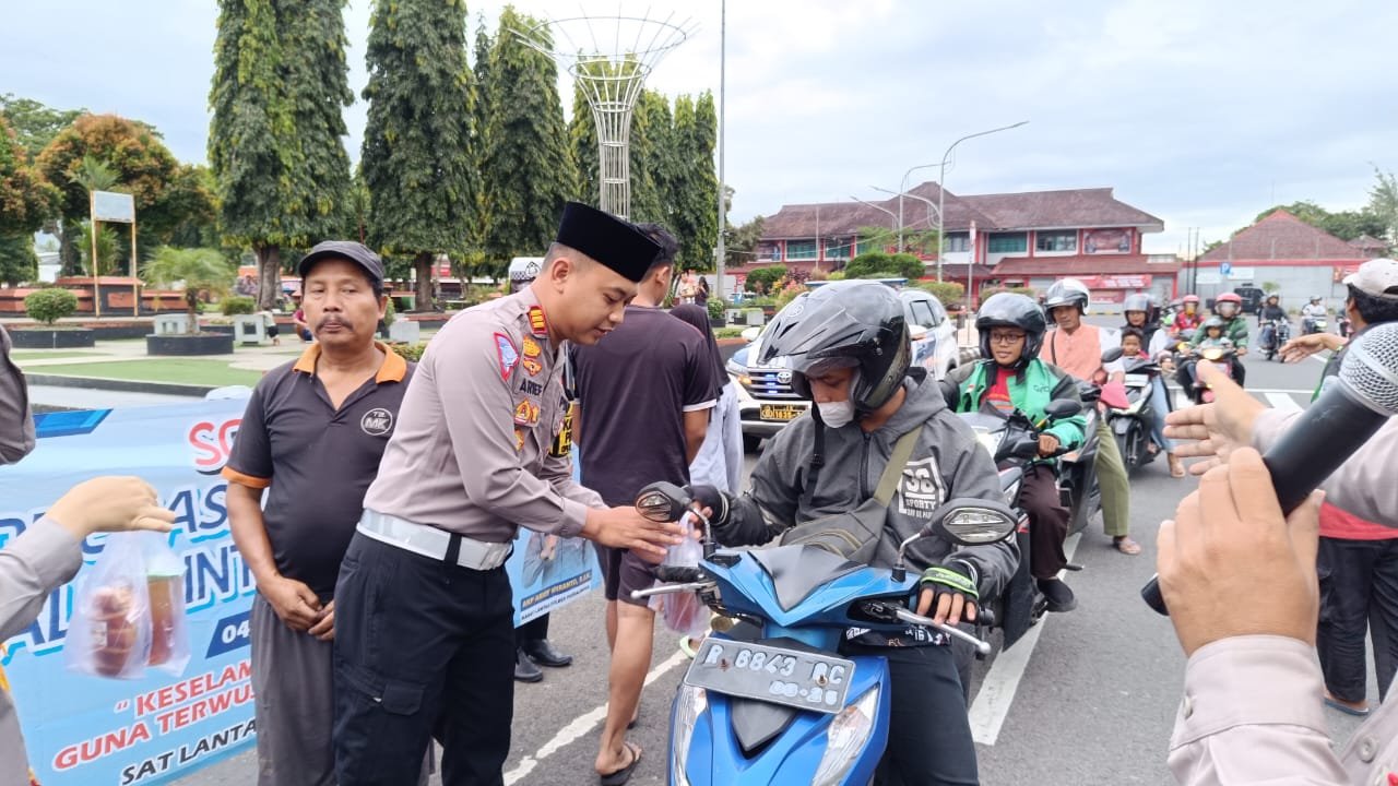 Kasat Lantas Polres Purbalingga AKP Arief Wiranto melalui Kanit Kamsel Iptu Agung Nugroho mengatakan dalam rangka Operasi Keselamatan Lalu Lintas Candi 2024 kami lakukan kegiatan simpatik. Salah satunya sosialisasi tertib lalu lintas sekaligus membagikan takjil bagi pengendara.