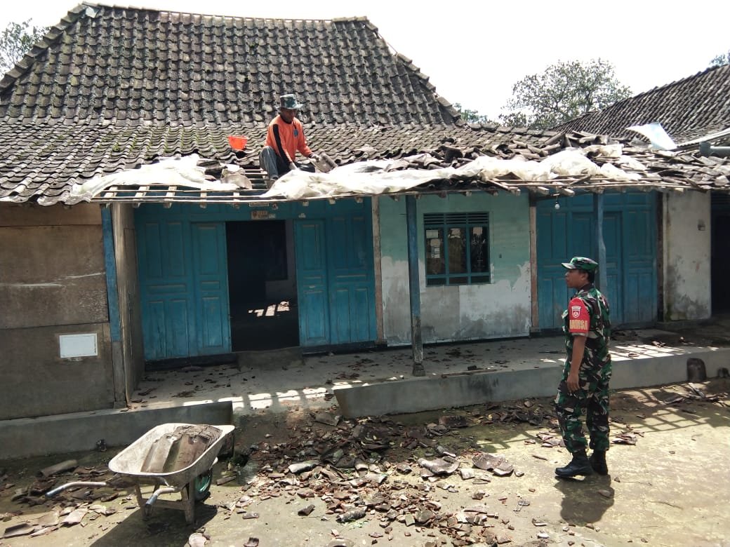 Babinsa Sertu Agus Wilopo mengatakan hujan yang disertai angin puting beliung yang terjadi secara tiba-tiba di wilayah binaanya telah menerjang pemukiman warga dan menerpa atap-atap rumah warga.