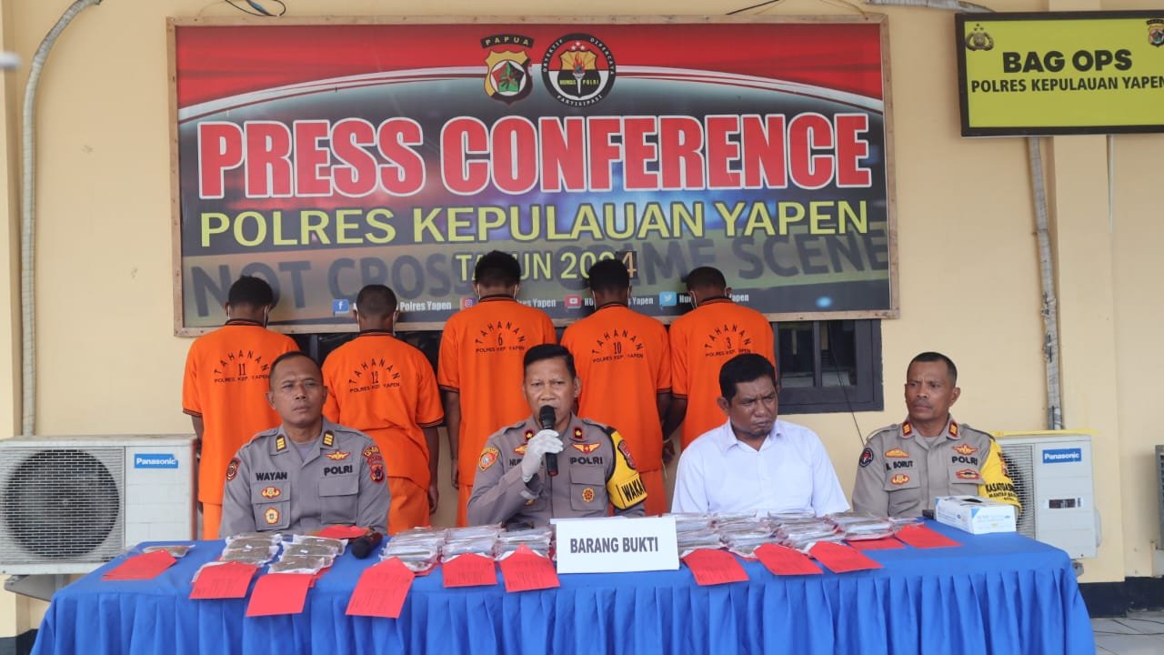 BN NEWS || Jayapura – Polres Kepulauan Yapen sukses mengungkap sindikat narkotika dengan menangkap 5 tersangka yang diduga terlibat dalam kasus pengedar ganja sebanyak 2.424,6 gram.