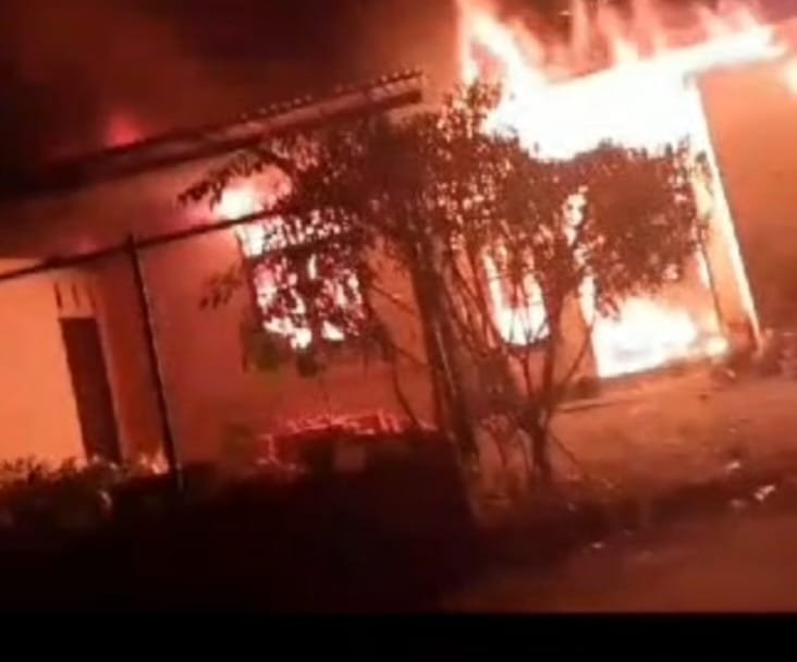 pembakaran rumah Juneidi Rabu 21 Maret 2023 pukul 01.30 dinihari di Lingkungan Talsim, Kel. Sirandorung, Kec. Rantau Utara, Kab. Labuhanbatu, Sumut.