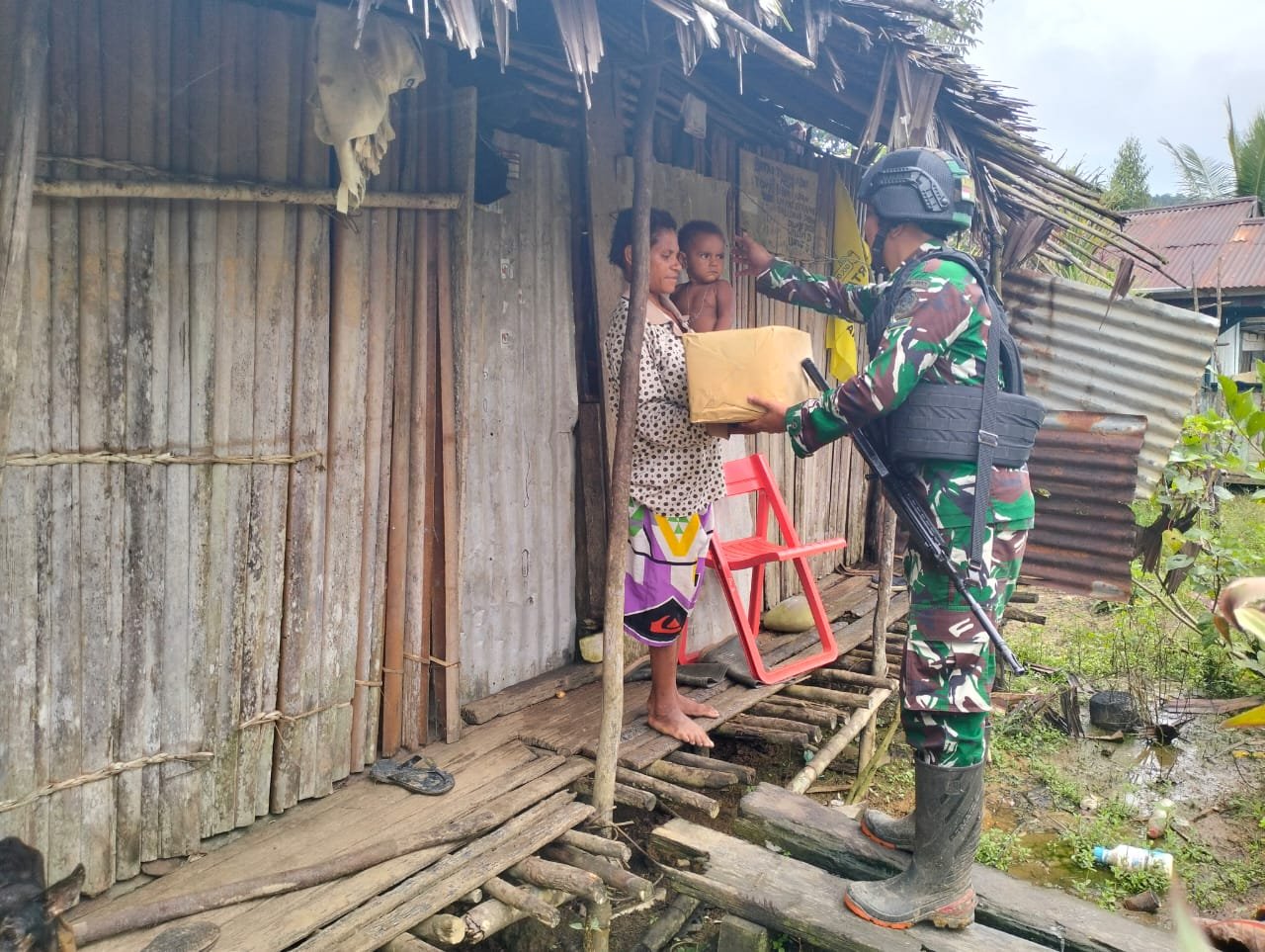 Pada kesempatan itu, Dankipur 2 selaku Danpos Ubrub Kapten Inf Dicky Dian Saputra S.T.Han., beserta personil Satgas berkeliling kampung membagikan paket guna membantu memenuhi kebutuhan warga.