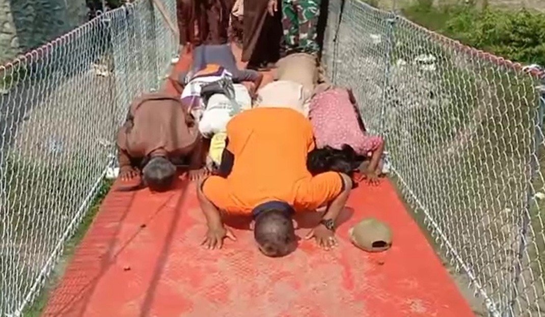 Kepala Desa Kutamendala H. Fathuri S.Ag. langsung merangkul dan memeluk Dandim bersama warga dan melakukan sujud syukur diatas Jembatan Gantung karena 270 Kepala Keluarga (1.000 jiwa) yang berada di Dukuh Wadas Gumantung tidak lagi terisolir.