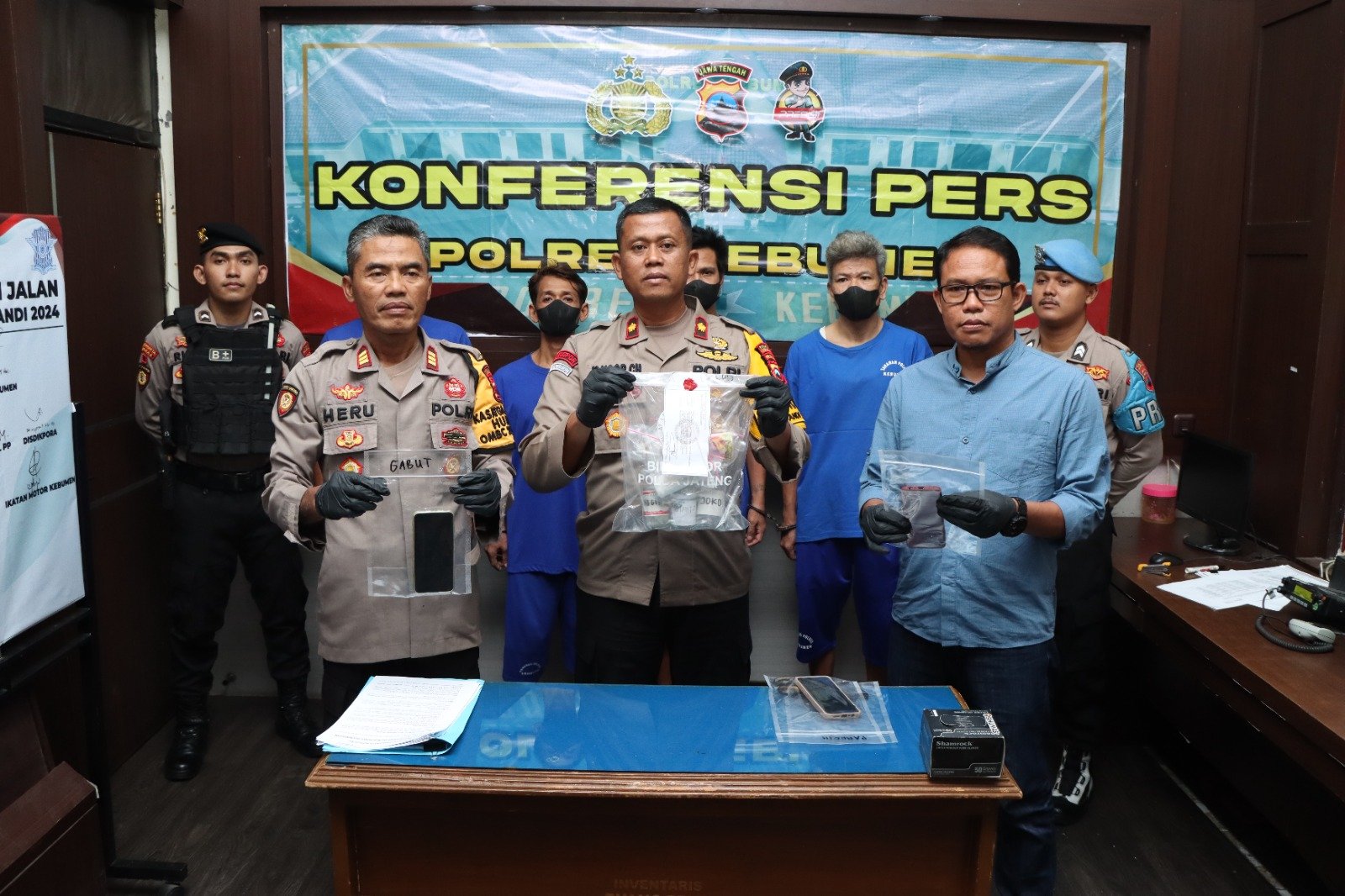 “Setelah mendapatkan informasi, kami segera melakukuan penyelidikan. Empat tersangka kasus penyalahgunaan narkotika jenis sabu, dapat kami amankan, “jelas Kapolres Kebumen AKBP Recky melalui Kasat Resnarkoba AKP Khusen Martono didampingi Wakapolres Kompol Muhammad Nurkholis dan Kasihumas AKP Heru Sanyoto.