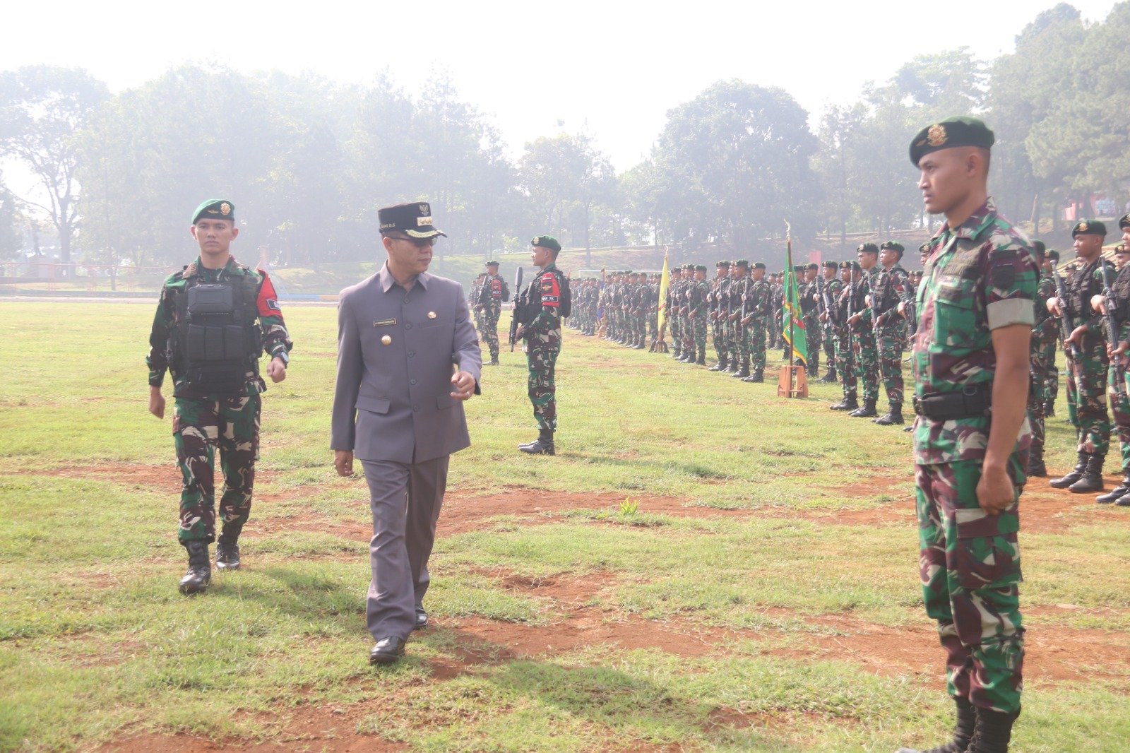 Bupati Kab. Bandung, H. M. Dadang Supriatna, S.IP., M.Si. yang bertindak sebagai Inspektur Upacara menyampaikan rasa bangganya. “Satgas Yonif 330 telah melakukan banyak hal yang luar biasa selama bertugas di Papua. Banyak torehan prestasi yang diraih tentunya telah mengharumkan nama satuan Yonif 330 Tri Dharma dan tentunya Kabupaten Bandung, terimakasih”, ujarnya.