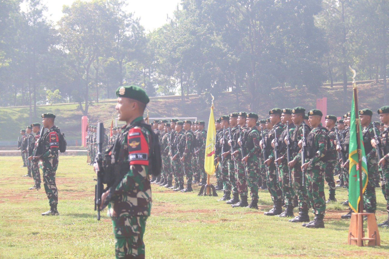 BN NEWS || Cicalengka – Cerah dan hangatnya mentari pagi di langit Mandalawangi seolah menjadi penanda kebahagiaan keluarga besar Ksatria Tri Dharma yang menggelar acara tradisi untuk menyambut kedatangan 450 prajuritnya yang telah kembali pasca purna tugas operasi di wilayah Intan Jaya selama 9 bulan di Papua Tengah, pada Kamis (26/3/24).