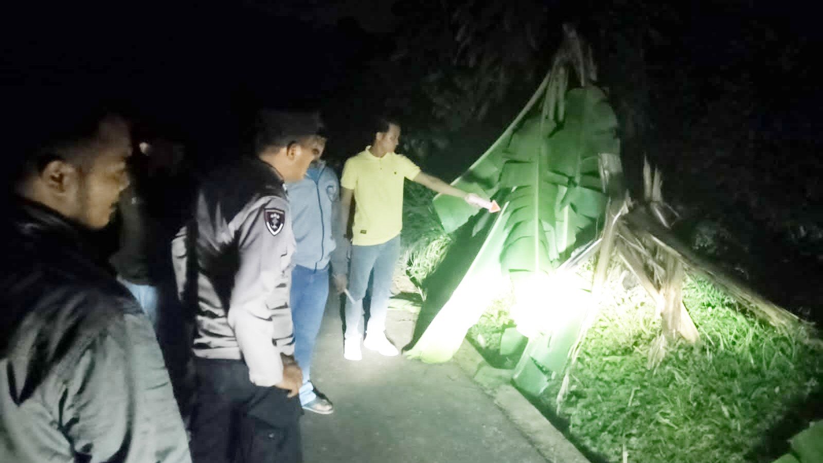 “Menurut saksi, korban yang saat itu berada di bawah pohon kelapa, langsung tergeletak dengan posisi terlentang kepala menghadap ke atas,” ungkap kapolsek.