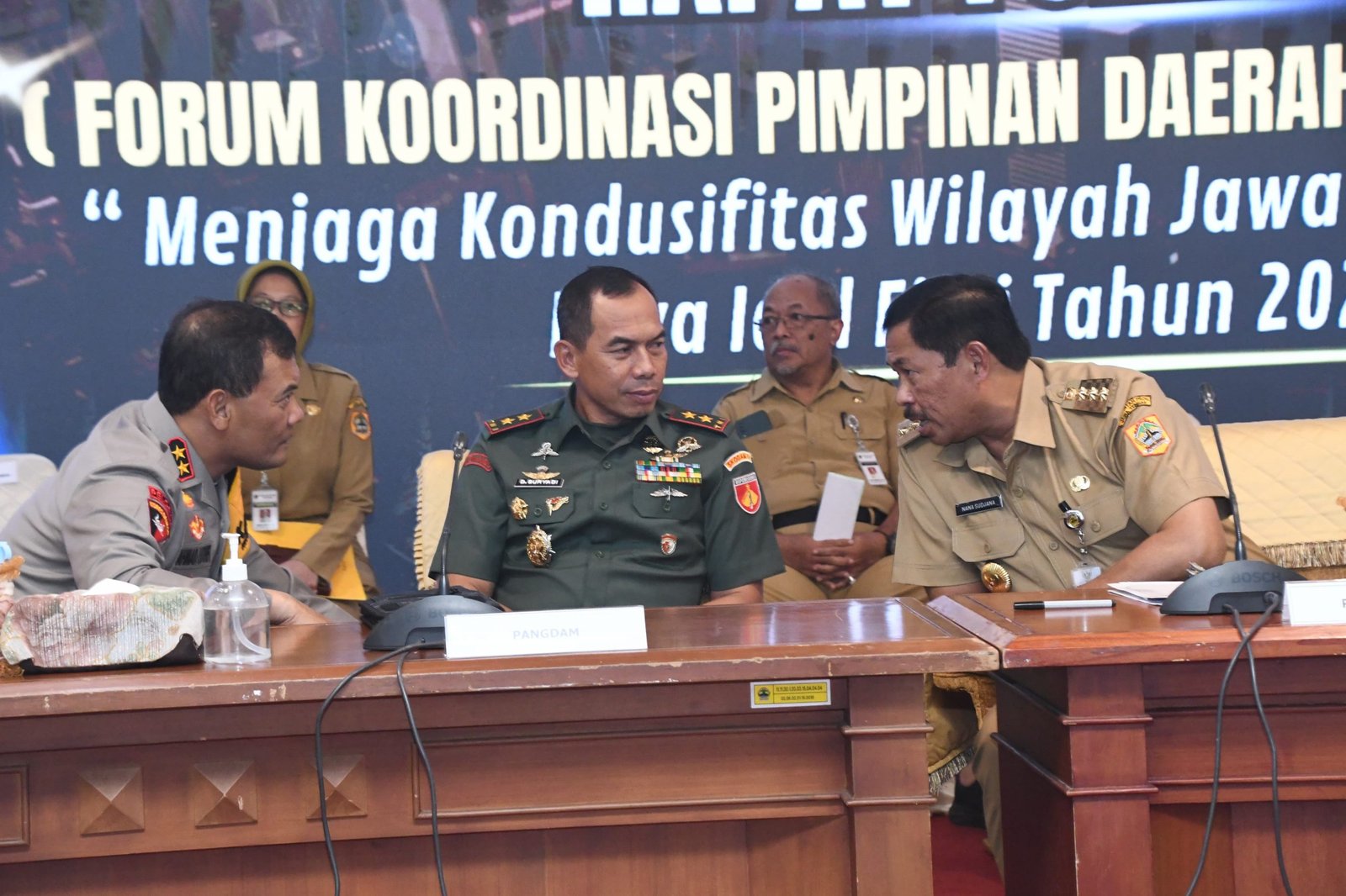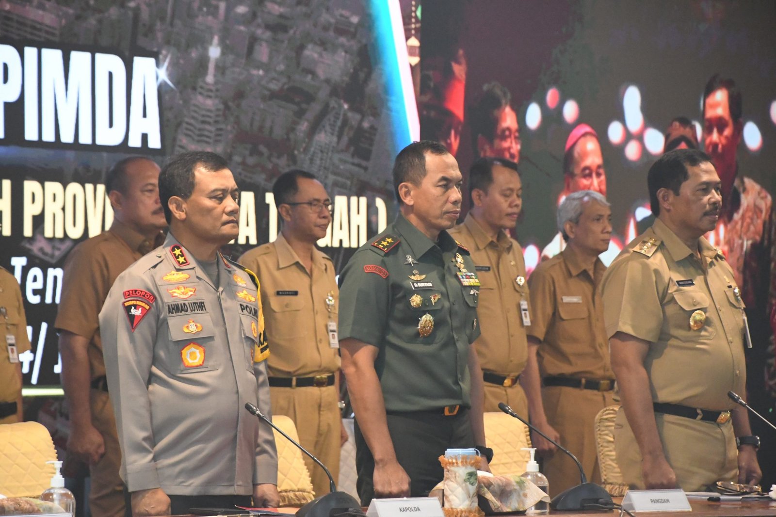 Pada pelaksanaannya Rakor tersebut turut dihadiri PJ. Gubernur Jateng, Komjen Pol (Purn) Drs. Nana Sudjana A.S.,M.M., Ketua DPRD Jateng, H. Sumanto, S.H., Kapolda Jateng, Irjen Pol Drs. Ahmad Lutfi, S.St.Mk., S.H., Kajati Jateng, Dr. I Made Suarmawan, S.H., M.H., Kapengti Jateng, H. Charis Mardiyanto, S.H., M.H., Para Pejabat Utama TNI-Polri serta pemuka Stakeholder terkait.