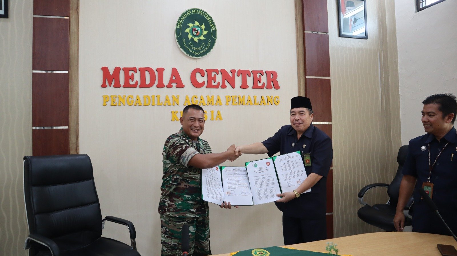 BN News. Pemalang || Pada tanggal 2 April 2024, telah dilangsungkan penandatanganan nota kesepakatan antara Kodim 0711/Pemalang dengan Pengadilan Agama Kabupaten Pemalang mengenai perlindungan hukum bagi anggota TNI yang sedang menjalani proses pernikahan dan perceraian dengan masyarakat. Kegiatan ini berlangsung di Kantor Pengadilan Agama Pemalang, dihadiri oleh 15 orang yang terdiri dari beberapa pihak, diantaranya adalah Letkol Inf Ade Afri Verdaniex S. Ip selaku Dandim 0711/Pemalang, Salahuddin Sibaga Bariang SH. MH selaku Kepala Pengadilan Agama Pemalang, perwakilan hakim, panitera, dan pegawai dari Pengadilan Agama Kabupaten Pemalang serta anggota Kodim 0711/Pemalang.