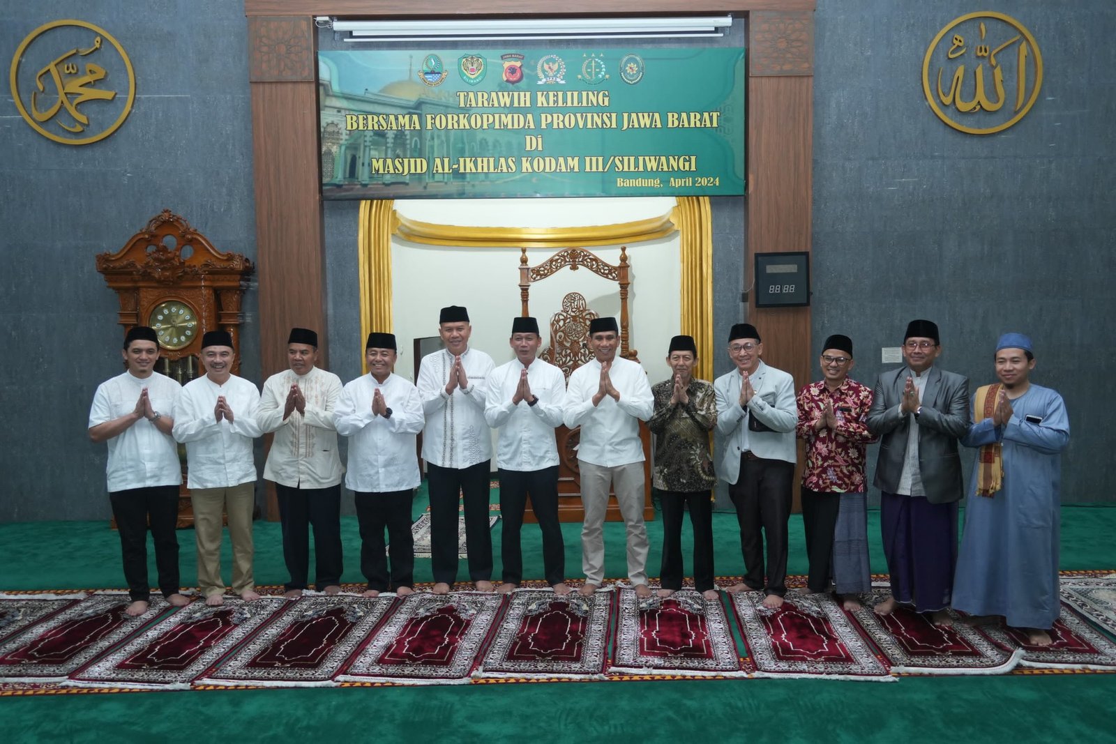 BN NEWS || Bandung – Kapolda Jabar Irjen Pol Dr.Akhmad Wiyagus, S.I.K., M.Si. M.M didampingi Pejabat Utama Polda Jabar, melakukan Sholat Tarawih Keliling bersama dengan Pangdam III Siliwangi dan Forkopimda Jabar, bertempat di Masjid Al Ikhlas Kodam III Siliwangi, Selasa (2/4/2024)