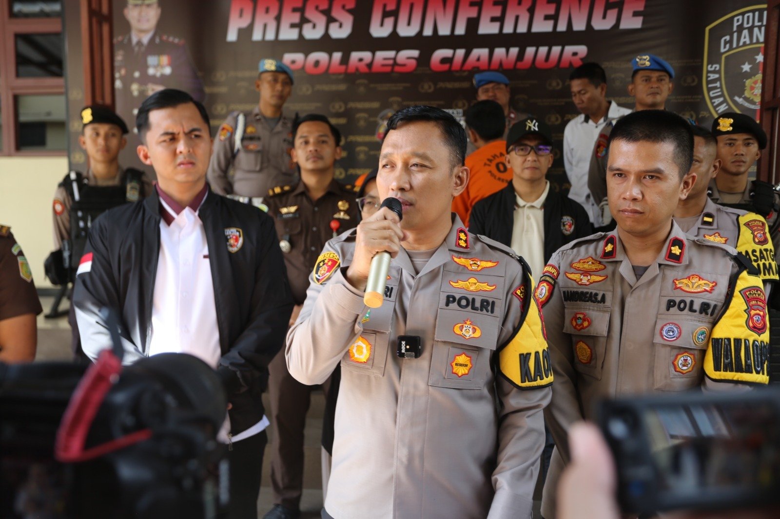 BN NEWS || Cianjur – Polres Cianjur Cianjur menggelar Konferensi Pers tentang perkembangan pencarian dan juga penangkapan terhdap tahanan yang kabur dari sel tahanan Pengadilan Negeri Cianjur, konferensi pers tersebut dipimpin oleh Kapolres Cianjur AKBP Aszhari Kurniawan, S.H., S.I.K., M.Si., Senin (08/04/2024).