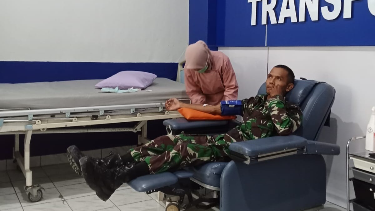 BN News. Barabai || Salah satu wujud implementasi Perintah Harian KASAD untuk membantu kesulitan rakyat, Babinsa Kodim 1002/Hulu Sungai Tengah Serda Maidi Rahman mendonorkan darahnya untuk membatu warga binaan Ibu Nabilah, umur 50 tahun yang mengalami penyakit menderita stroke dan diabetes dan sedang perawatan di RS. Damanhuri Barabai.