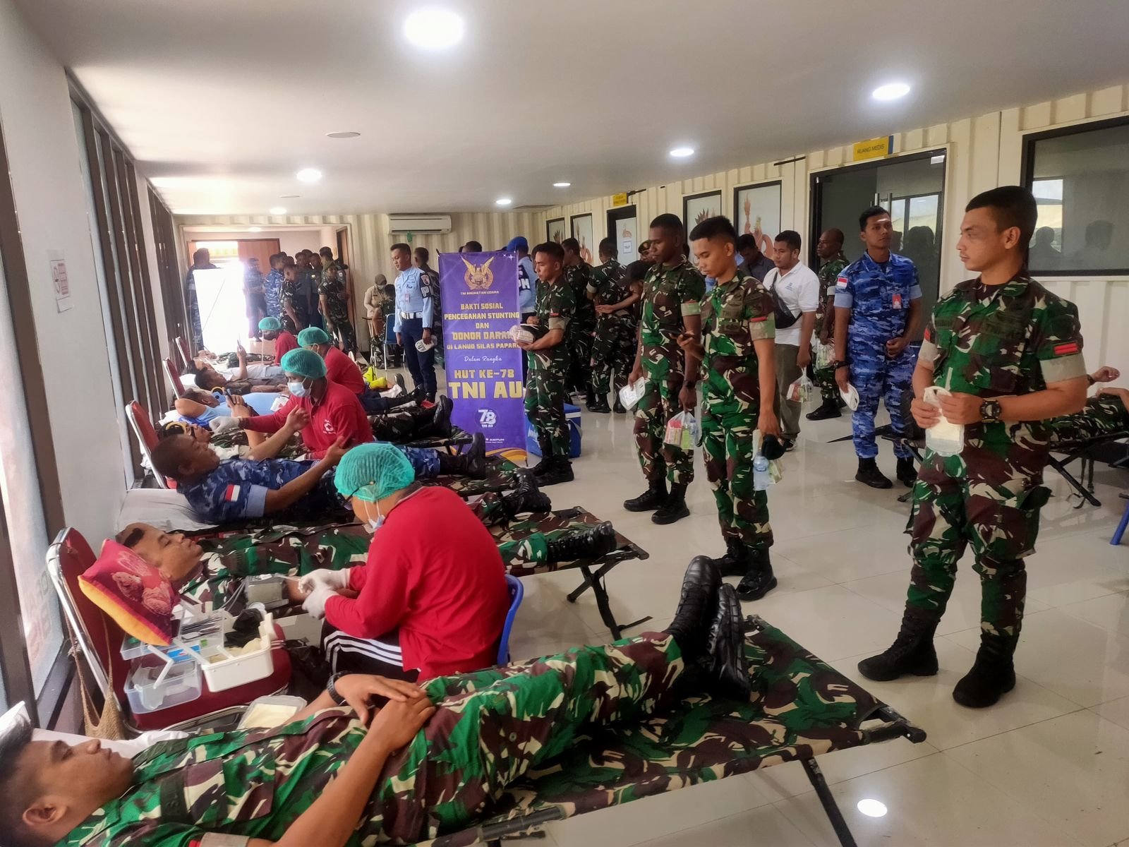 BN NEWS || Jayapura – Dalam rangka memeriahkan Hari Ulang Tahun ke-78 Tentara Nasional Indonesia Angkatan Udara (TNI AU), Yonif 751/VJS turut berpartisipasi dalam kegiatan donor darah yang diselenggarakan di Lanud Silas Papare, Papua. Kegiatan ini tidak hanya menjadi wujud solidaritas TNI , tetapi juga sebagai bentuk kontribusi nyata dalam membantu masyarakat yang membutuhkan darah.(20/04/2024)