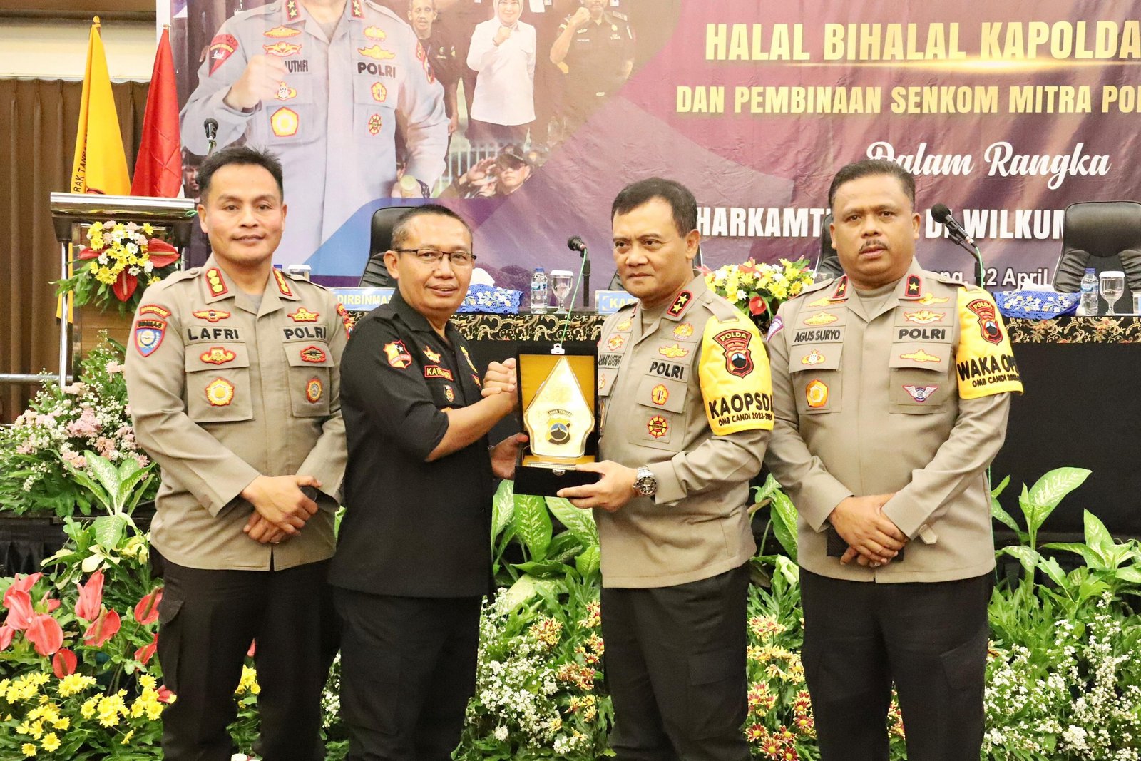 Kegiatan tersebut turut dihadiri Waka Polda Brigjen Pol Agus Suryo Nugroho, sejumlah PJU Polda Jateng, Ketua Umum Senkom mitra Polri Pusat K.P.H. Katno Hadi, serta para komandan wilayah Senkom Mitra Polri dari berbagai kabupaten dan kota didampingi anggotanya.