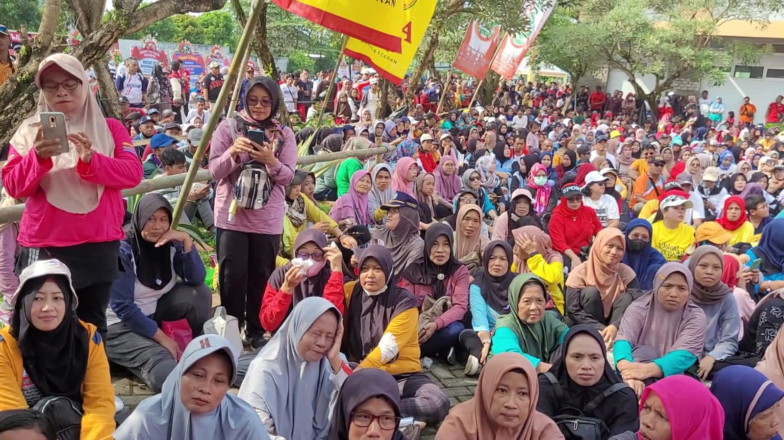 BN News. Banyumas || Ribuan pekerja di Kabupaten Banyumas menghadiri Peringatan Hari Buruh Sedunia atau biasa disebut Mayday Rabu 1 Mei 2024 di halaman Kantor Dinas Tenaga Kerja, Koperasi, dan Usaha Kecil dan Menengah (Dinnakerkop UKM) Kabupaten Banyumas. Kegiatan yang digelar bersama Dinnakerkop UKM, SPSI, Apindo dan Hiswanamigas tersebut dilaksanakan dengan menggelar beragam kegiatan antara lain senam bersama, donor darah hingga pembagian ratusan doorprize dengab hadiah utama berupa 11 sepeda motor.