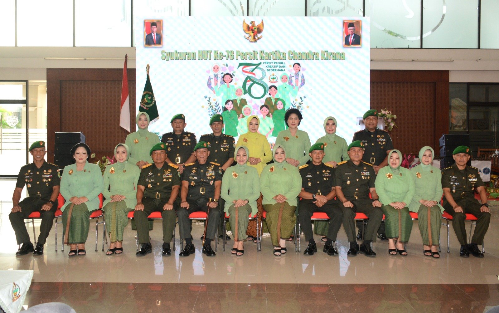 Syukuran HUT ke-78 Persit KCK Tahun 2024 mengusung tema “Persit Peduli, Kreatif dan Sederhana” dihadiri oleh Kasdam III/Slw, Irdam III/Slw, Kapoksahli Pangdam III/Slw, Asrendam III/Slw, para Asisten Kasdam III/Slw, para Dan/ Kabalakdam III/Slw, Dandim 0618/Kota Bandung, Dandim 0609/Cimahi, para Danyon, Dandeninteldam III/Slw, Pengurus Persit KCK PD III/Slw dan anggota.