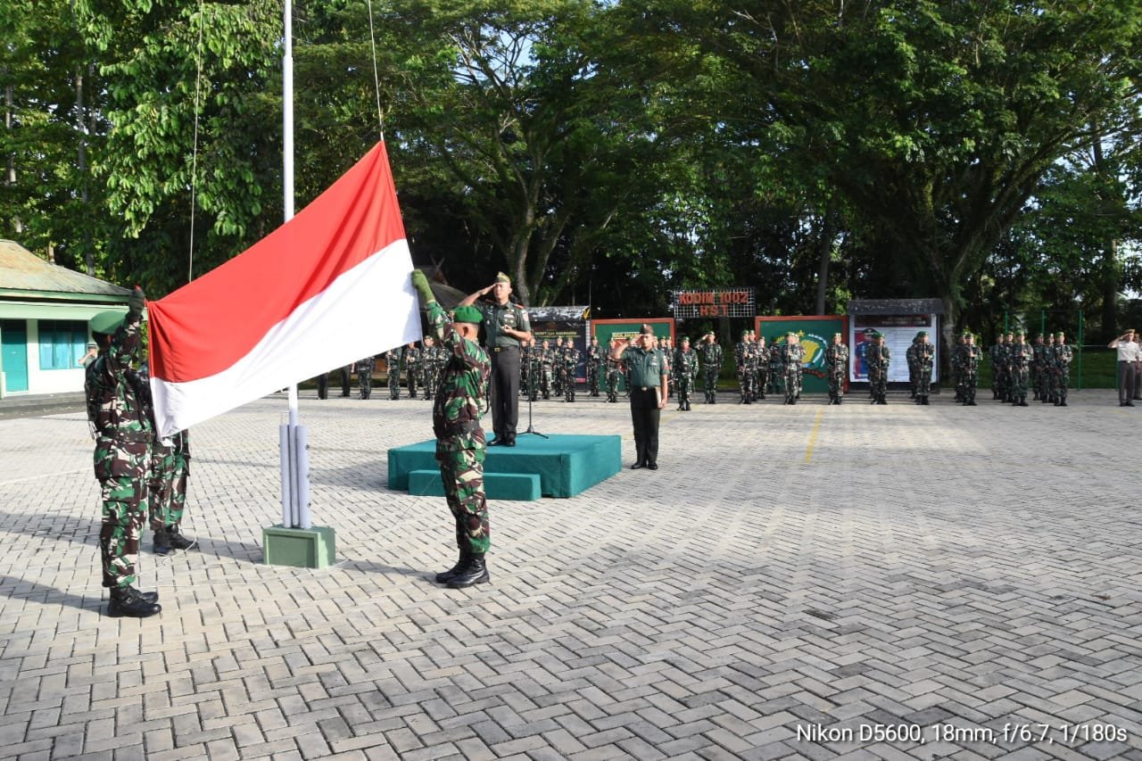 Upacara yang bertemakan “Kebangkitan Kedua Menuju Indonesia Emas” berlangsung di lapangan apel Makodim 1002/HST di jalan Telaga Padawangan Kelurahan Barabai Timur Kecamatan Barabai Kabupaten Hulu Sungai Tengah diikuti oleh seluruh anggota Kodim 1002/HST.