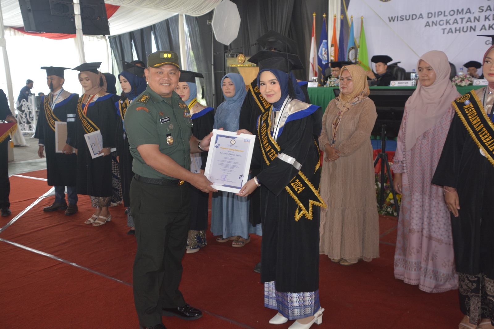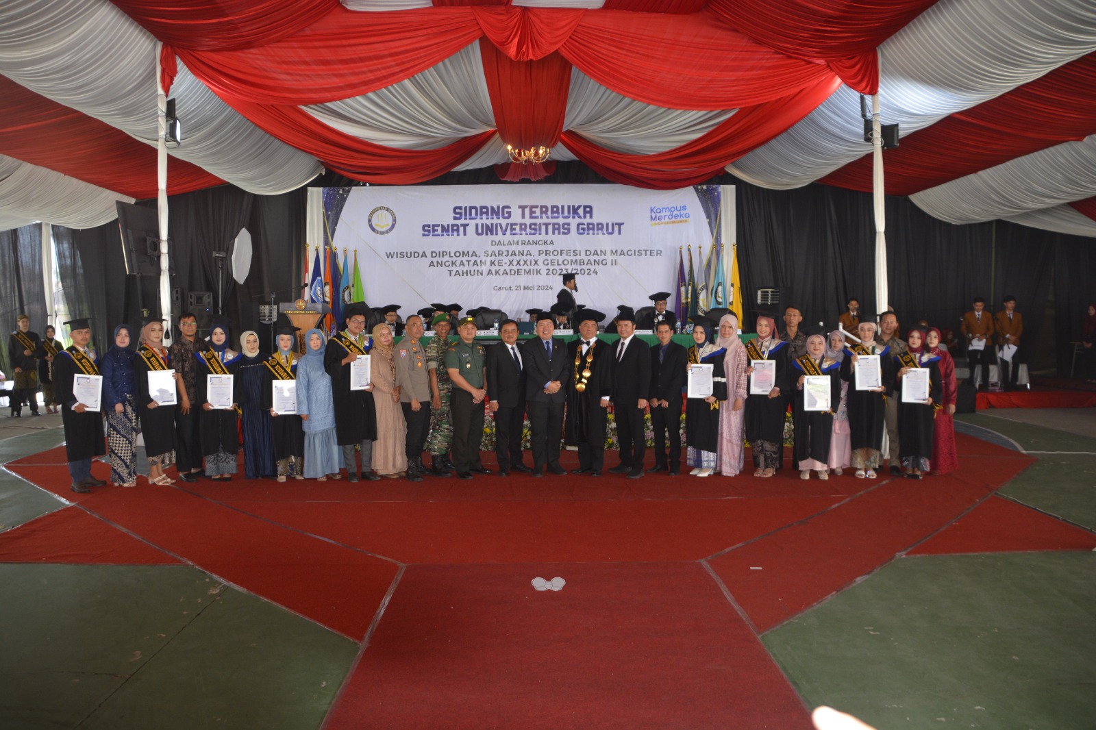 BN NEWS || Garut – Komandan Korem 062/Tn Kol Arh Rudi Ragil. SP, S.Sos., M.Si., diwakili Kasrem 062/Tn Letkol Inf Hamzah Budi Susanto, S.E., M.I.P., menghadiri Sidang Terbuka Senat Universitas Garut (Uniga) Dalam Rangka Wisuda Diploma, Sarjana, Profesi dan Magister Angkatan Ke- XXXIX Gelombang II Tahun Akademik 2023/2024. bertempat di Universitas Garut Jln. Raya Samarang – Garut Hampor Kel. Cimanganten Kec. Tarogong Kaler Kab. Garut. Selasa (21/05/2024).