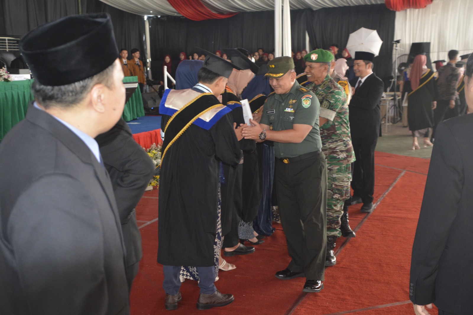 Turut hadir, Pj. Bupati Garut di wakili Asda I, Dandim 0611/Garut diwakili Danramil Cisompet, Kapolres Garut diwakili Kapolsek Tarka, Ketua Yayasan Uniga, Ketua Senat Uniga, Koordinator Universitas Sunan Gunung Jati Lembaga Jabar-Banten, Para Orang tua wisudawan/wati dan tamu undangan lainnya. (Penrem 062/Tn)