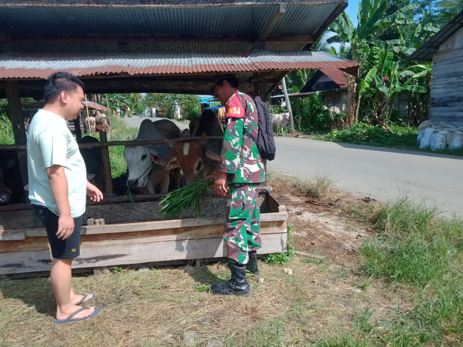 Sementara itu, Budiono pemilik ternak Sapi yang disambangi Babinsa mengungkapkan terima kasih bapak Babinsa sudah mengecek ternak kami ini dan alhamdulilah aman, untuk sumber makanan buat sapi masih menggunakan pakan yang alami dan disamping itu juga melakukan pengecekan rutin kesehatan agar terhindar dari penyakit mulut dan kuku (PMK).makananya diperoleh secara tradisional yaitu dengan cara dicarikan rumput atau daun daunan dari jenis tertentu yang diambil dari kebun di sekitar desa,” ucapnya.
