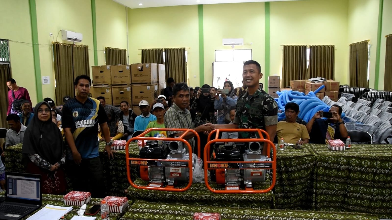 BN News. Barabai || Komanadan Kodim 1002/HST Letkol Inf Fery Perbawa.S.Hub.Int.,M.Han mengahdiri acara Pertemuan dan penyerahan Bantuan Pompa air kepada Gapoktan CPCL di Aula Dinas Pertanian, Jl. Perintis Kemerdekaan Desa Benawa Tengah RT 09 RW 03 Kecamatan Barabai Kabupaten HST. Jum’at (31/05/2024).
