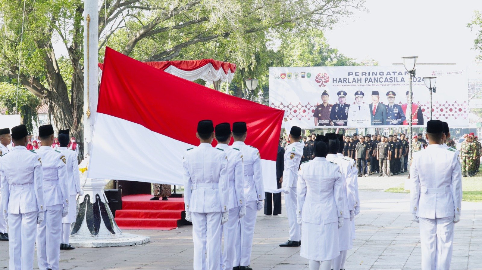 Bupati Pemalang Mansur Hidayat ST M. Ling, selaku Inspektur Upacara membacakan amanat Kepala Badan Pembinaan Ideologi Pancasila Republik Indonesia menyampaikan pada hari ini tanggal 1 Juni 2024, kita memperingati Hari Lahir Pancasila, dimana Bung Karno, sebagai Proklamator Kemerdekaan, Bapak Pendiri Bangsa, pertama kali memperkenalkan Pancasila melalui pidatonya pada tahun 1945 di depan sidang BPUPK. Peringatan Hari Lahir Pancasila Tahun 2024 ini mengambil tema “Pancasila Jiwa Pemersatu Bangsa Menuju Indonesia Emas 2045”. Tema ini mengandung maksud bahwa Pancasila dapat menyatukan kita dengan segala perbedaan suku, agama, budaya, dan bahasa dalam menyongsong 100 tahun Indonesia Emas yang maju, mandiri dan berdaulat.
