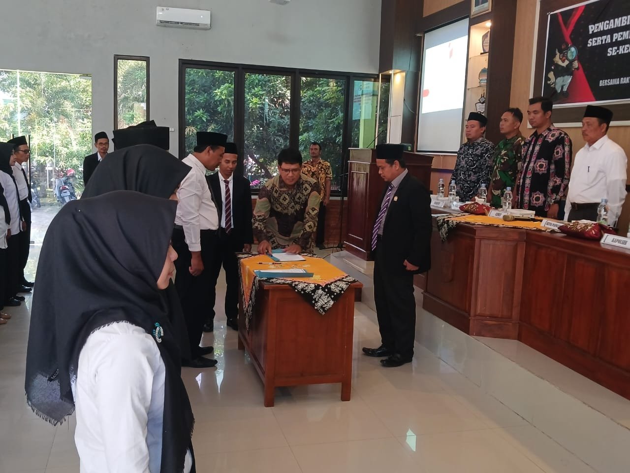Acara diawali dengan pembacaan Surat Keputusan dan pengucapan sumpah janji oleh peserta yaitu Pengawas Pemilu Desa se-Kecamatan Guntur. Dilanjutkan pembacaan Fakta Integritas dan penandatangan Berita Acara.