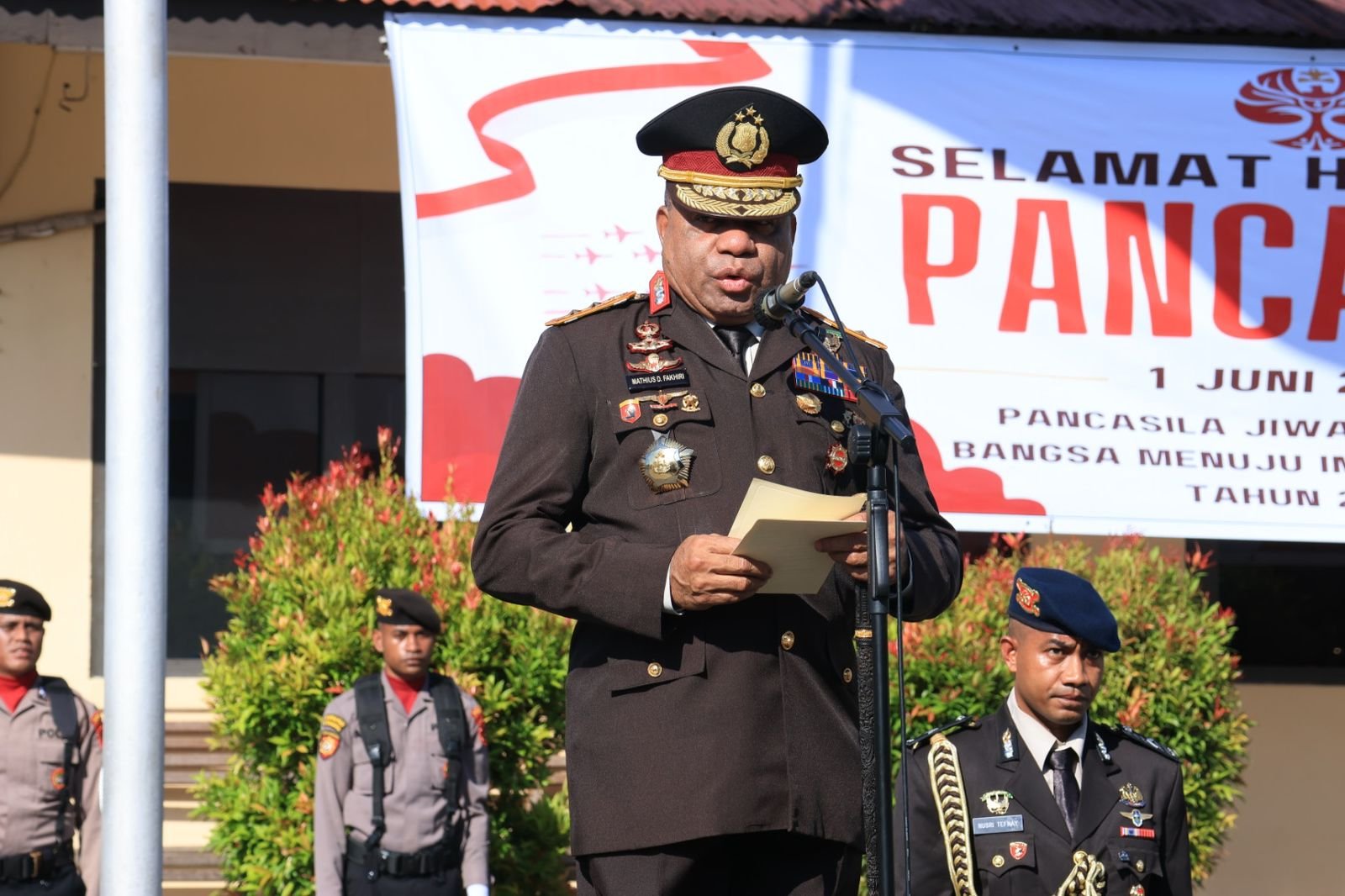 Pada kesempatan tersebut Kapolda Papua membacakan amanat Kepala Badan Pembinaan Ideologi Pancasila Republik Indonesia.