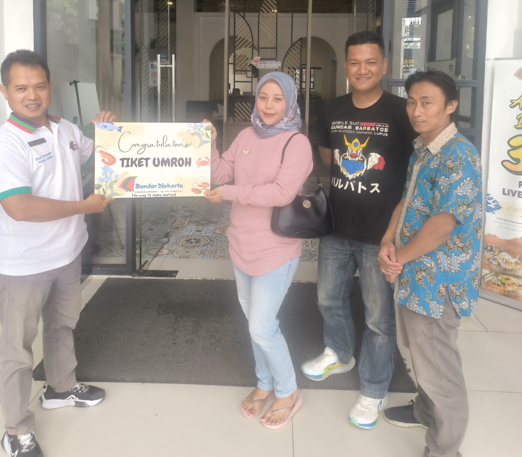BN NEWS, Garut || Ny. Mita Nurhayati Adi L, seorang ibu rumah tangga warga Cisurupan Garut, saat ini tengah mengalami keberuntungan besar ketika menerima hadiah umrah gratis dari Bandar Djakarta Cirebon, perusahaan yang terkenal dengan kuliner seafoodnya yang lezat. Senin (3/6/2024)
