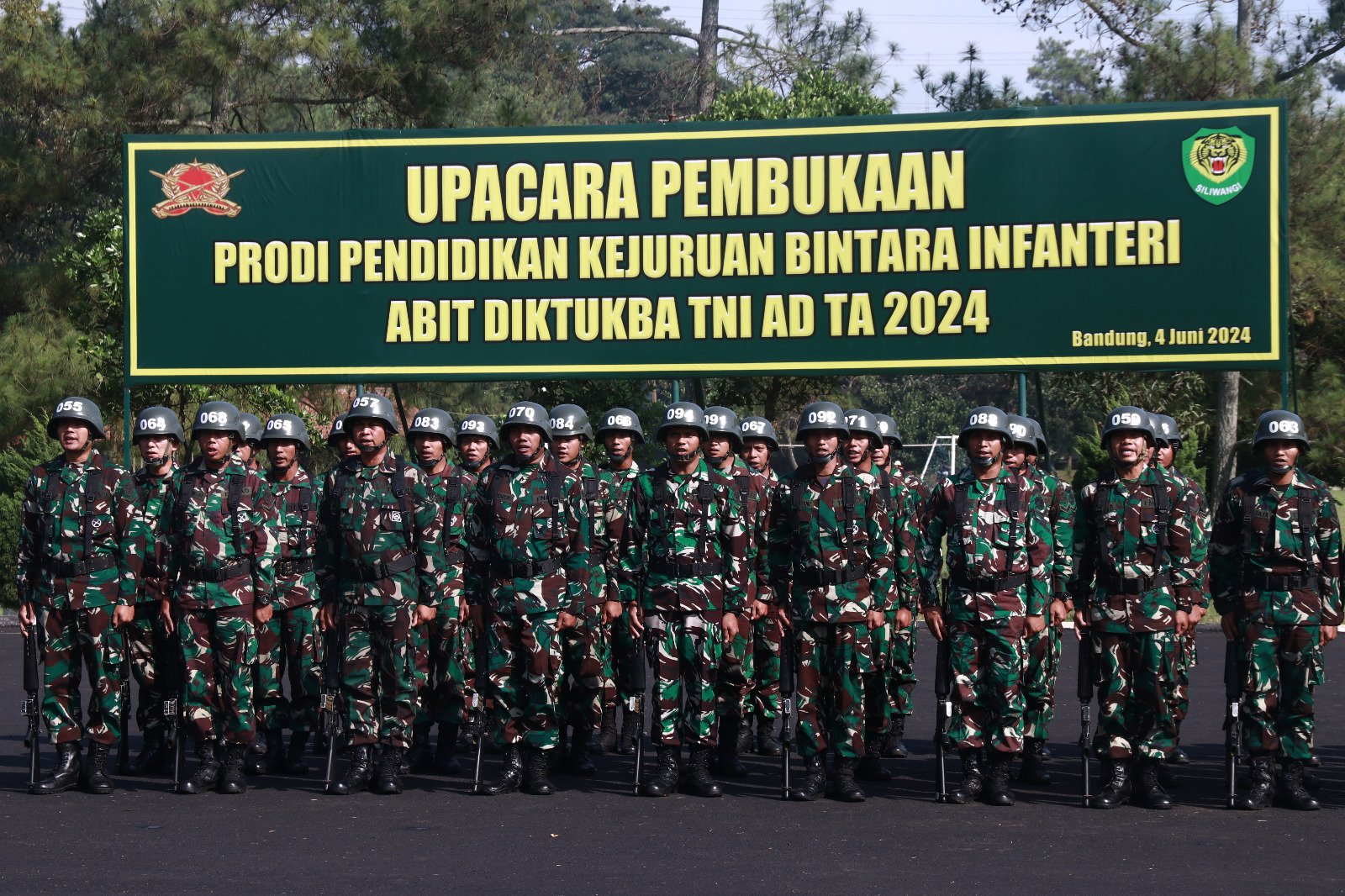 Pembukaan Dikjurbaif TNI AD TA. 2024 diikuti oleh 141 siswa Abit Diktukba TNI AD TA. 2024. Bertindak selaku Komandan Upacara Kasipers Bagum Rindam III/Slw Mayor Inf Suwito.