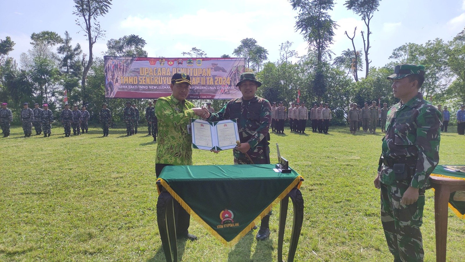 BN News. Pemalang || Kodim 0711/Pemalang Korem 071/Wijayakusuma menggelar upacara penutupan TMMD Sengkuyung tahap II TA. 2024, bertempat di lapangan desa Penakir kecamatan Pulosari kabupaten Pemalang yang bertemakan “Darma Bakti TMMD Mewujudkan Percepatan Pembangunan di Wilayah”, Jumat (7/6/2024).