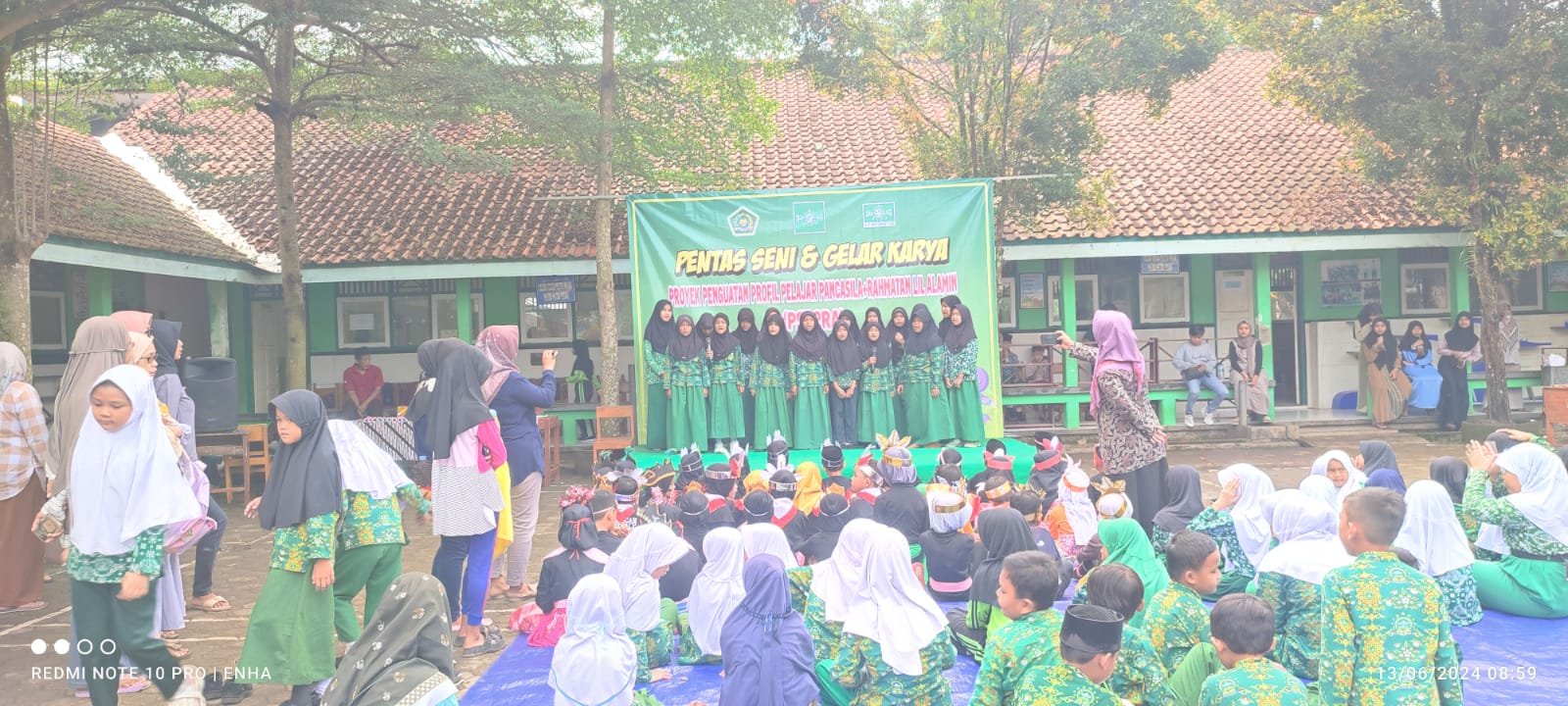BN News. Banyumas || Madrasah Ibtidaiyah (MI) Ma’arif Nahdlatul Ulama (NU) 01 Pangebatan Karanglewas Banyumas Melaksanakan Pentas Seni (Pensi) dan Gelar Karya Proyek Penguatan Profil Pelajar Pancasila dan Rahmatan Lil Alamin (P5P2RA), bertema “Membangun Kreatifitas dengan Karya”, di Halaman MI Ma’arif NU 01 Desa Pangebatan Kec Karanglewas, Kab Banyumas.
