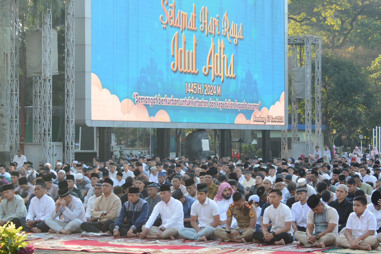 Dengan tema “Semangat Berkurban Untuk Ketaatan dan Kepedulian Kepada sesama”. Bertindak sebagai Imam dan khatib KH. Ceng Jamal, S.Sos., pimpinan Ponpes Riyadul Jannah Solokan Jeruk Kab. Bandung dengan diikuti keluarga Prajurit, PNS Kodam III/Slw dan masyarakat sekitar.