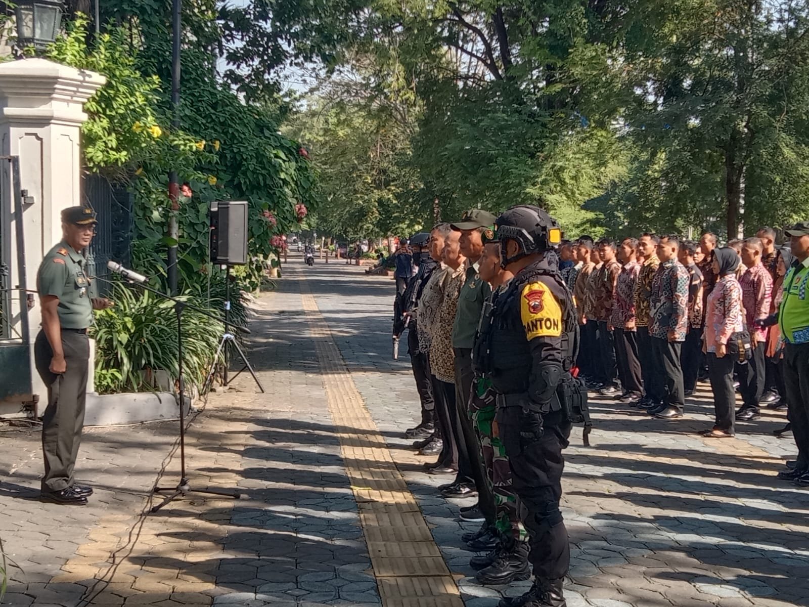 ” Yang perlu saya sampaikan bahwa yang pertama pengamanan itu bersifat operasi yang sangat penting dalam arti personel Pengamanan itu tidak boleh lengah, karena setiap saat ancamannya berbeda, pastikan bahwa rekan-rekan sekalian adalah betul-betul mengamankan objek yaitu Bapak Presiden kita, mari kita laksanakan tugas ini dengan tanggung jawab yang tinggi, informasi sekecil apapun yang sekiranya bersifat ancaman segera laporkan agar bisa kita ambil tindakan, tegas Dandim.