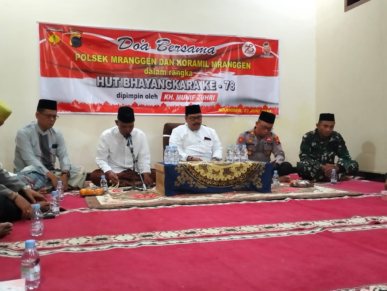 Pada kesempatan tersebut Danramil 12/Mranggen Kapten Inf Tulodo menyampaikan terima kasih atas undagan kegiatan zikir, tausiyah dan doa bersama ini dalam rangka menyambut HUT Bhayangkara Ke-78 tahun 2024.