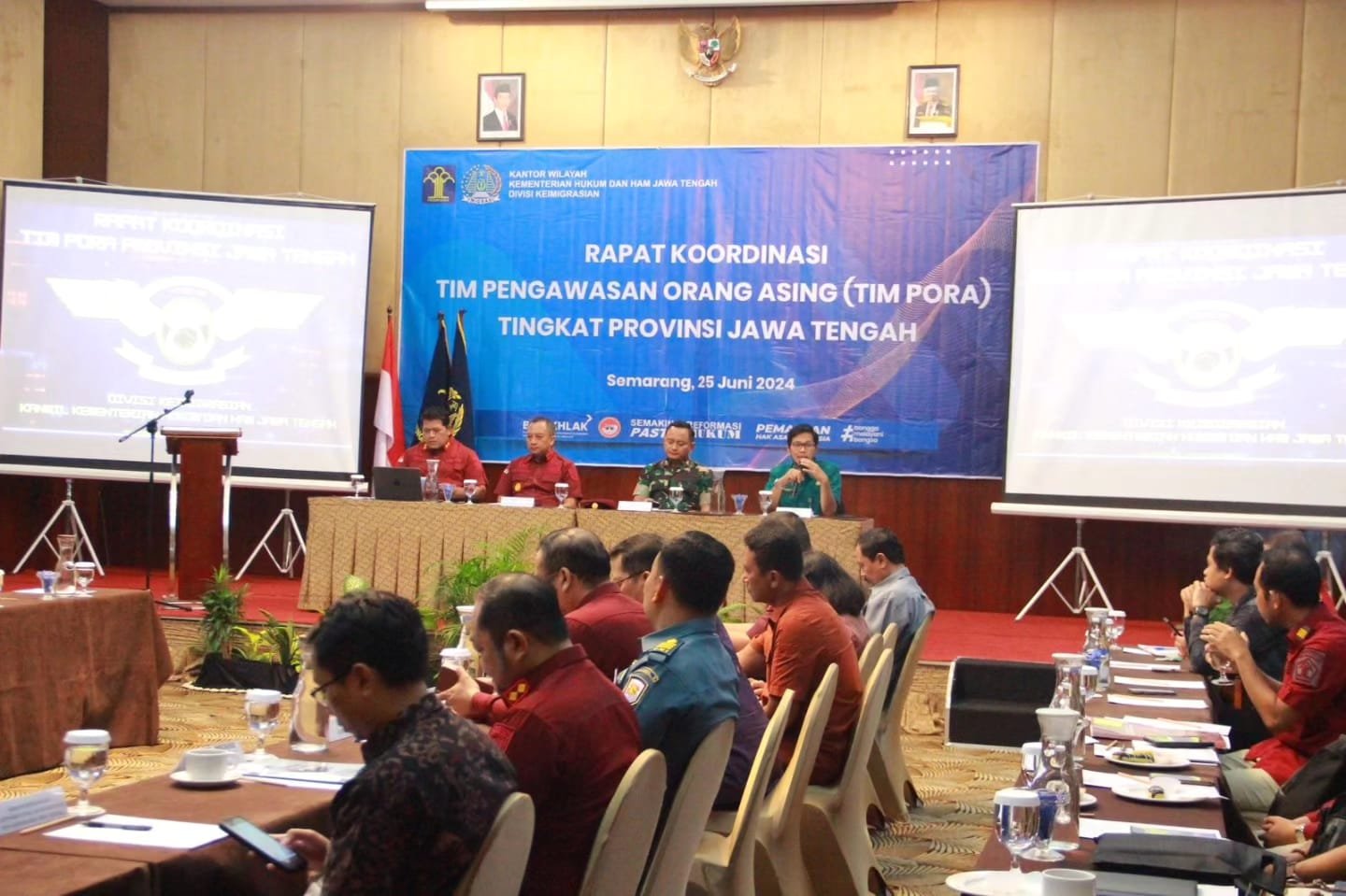BN News. Semarang || Dalam menjaga keamanan dan kedaulatan negara, dibutuhkan keterlibatan berbagai pihak dalam pengawasan orang asing. Hal tersebut menjadi penegasan Kepala Kantor Wilayah Kementerian Hukum dan HAM Jawa Tengah, Tejo Harwanto, saat membuka Rapat Koordinasi Tim Pengawasan Orang Asing (Timpora) tingkat Provinsi Jawa Tengah, Selasa (25/06/24).
