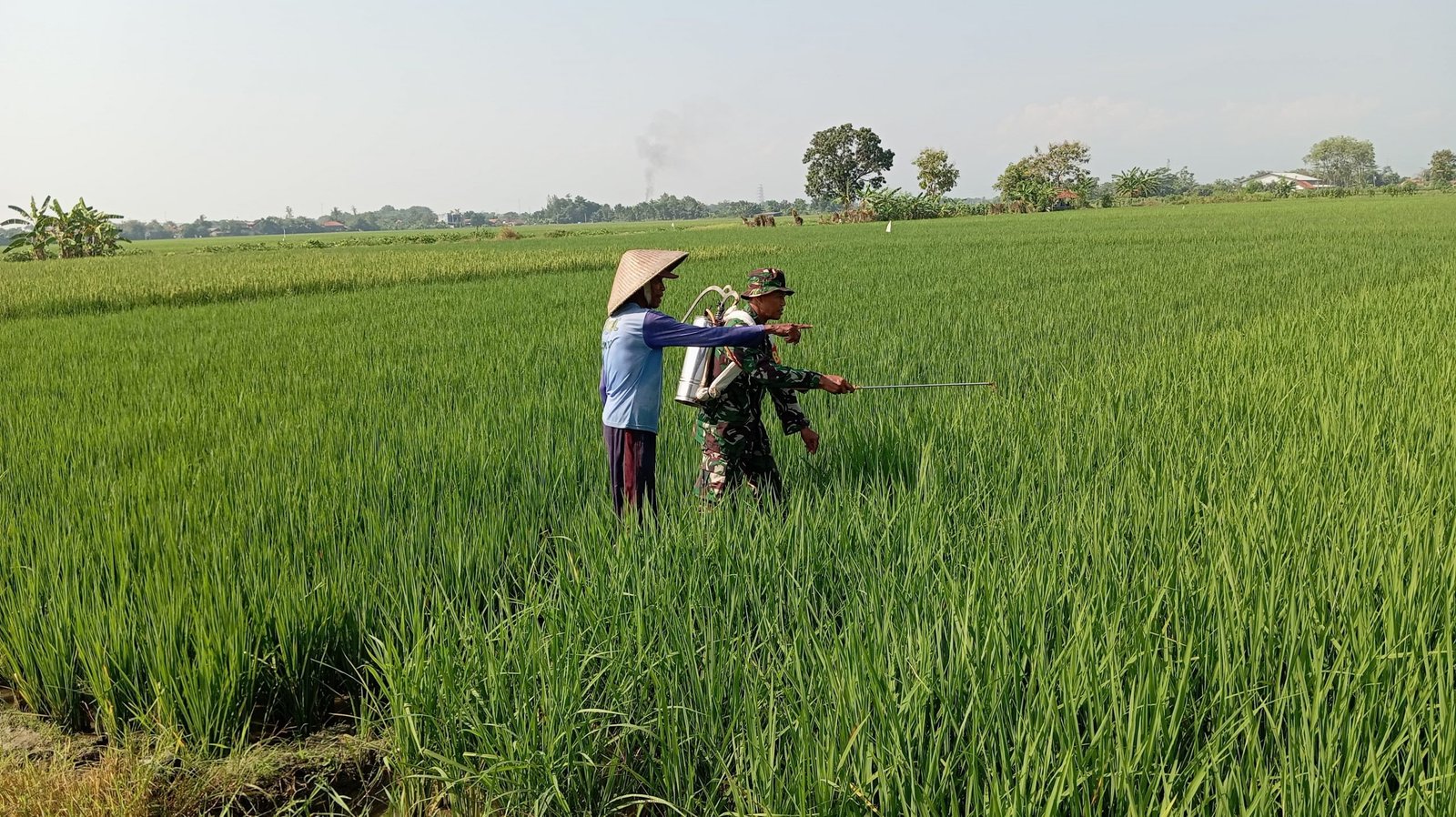 Pada kesempatan kali ini, anggota Koramil 04/Comal Pelda Dirin telah melaksanakan kegiatan pendampingan penyemprotan padi jenis Inpari 32 pada umur tanam 38 hari dengan menggunakan jenis obat Abacel. Ditanam di lahan seluas 1 Ha milik Waryani yang beralamat di Desa Sikayu, Kecamatan Comal Kabupaten Pemalang, kegiatan ini bertujuan untuk membantu petani meningkatkan hasil panen padi mereka.