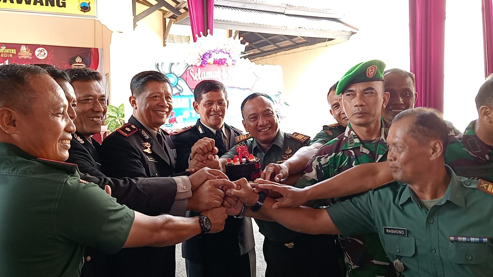 Saat Kapten Sugito memberikan nasi tumpeng kepada Wakapolres, disambut riuh tepuk tangan anggota TNI-Polri sambil menyanyikan lagu Selamat Ulang Tahun.
