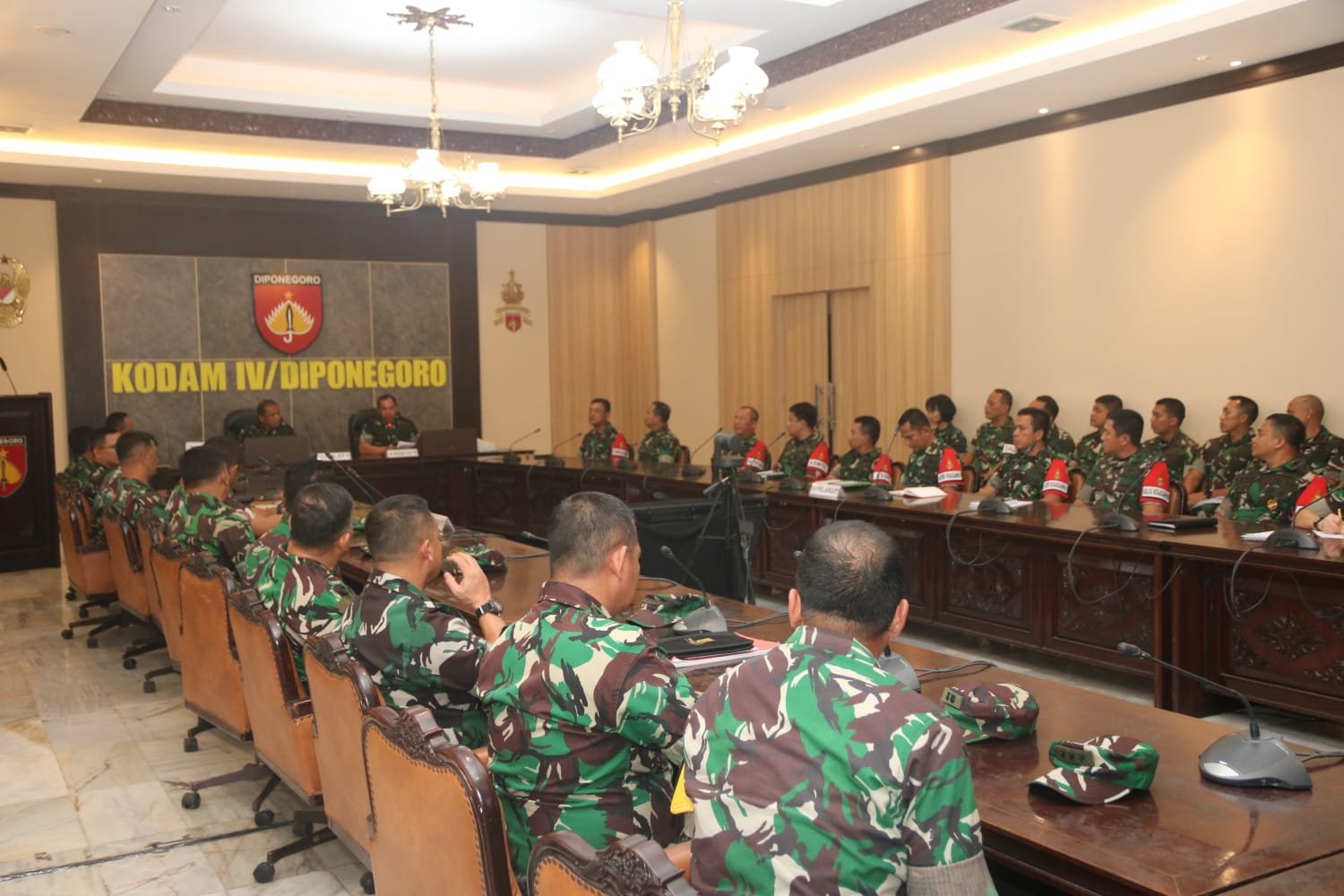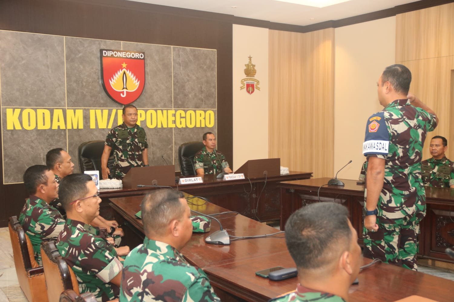 BN News. Semarang || Pangdam IV/Diponegoro Mayjen TNI Deddy Suryadi, S.I.P., M.Si., nyatakan jajarannya siap melaksanakan Latihan Kesiapsiagaan Operasional (LKO) Kodam IV/Diponegoro TA 2024 dihadapan Dankodiklat TNI Laksamana Madya TNI Maman Firmansyah, S.E., beserta rombongan di Ruang Bina Yudha, Makodam. Senin (1/7/2024).