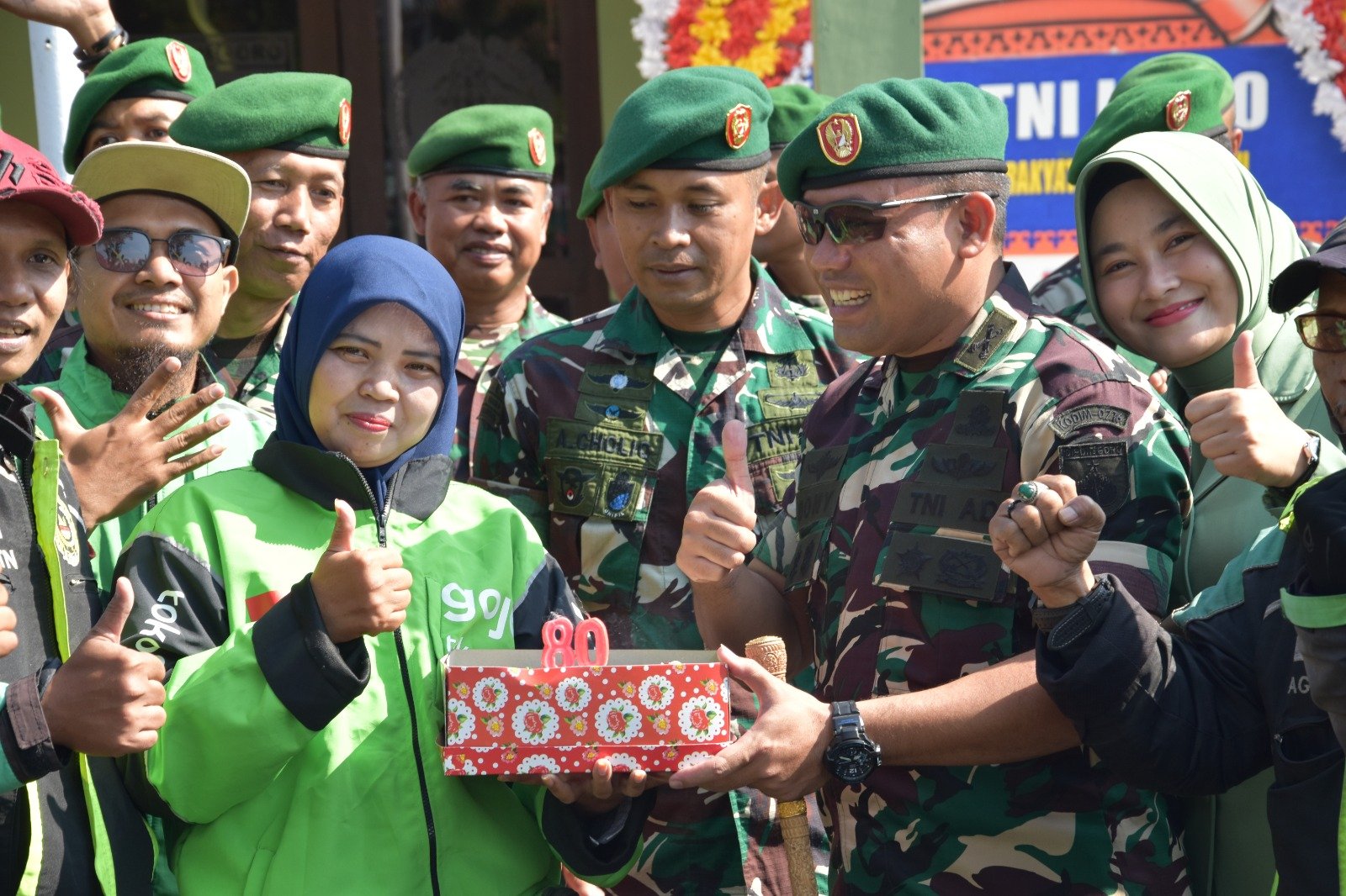 BN News. Demak || Masih dalam suasana HUT Ke-80 TNI, Sejumlah Driver Ojek Online (Ojol) di Wilayah Kabupaten Demak tiba-tiba mendatangi Markas Kodim 0716/Demak guna memberikan kejutan, Kamis (09/10/2025).