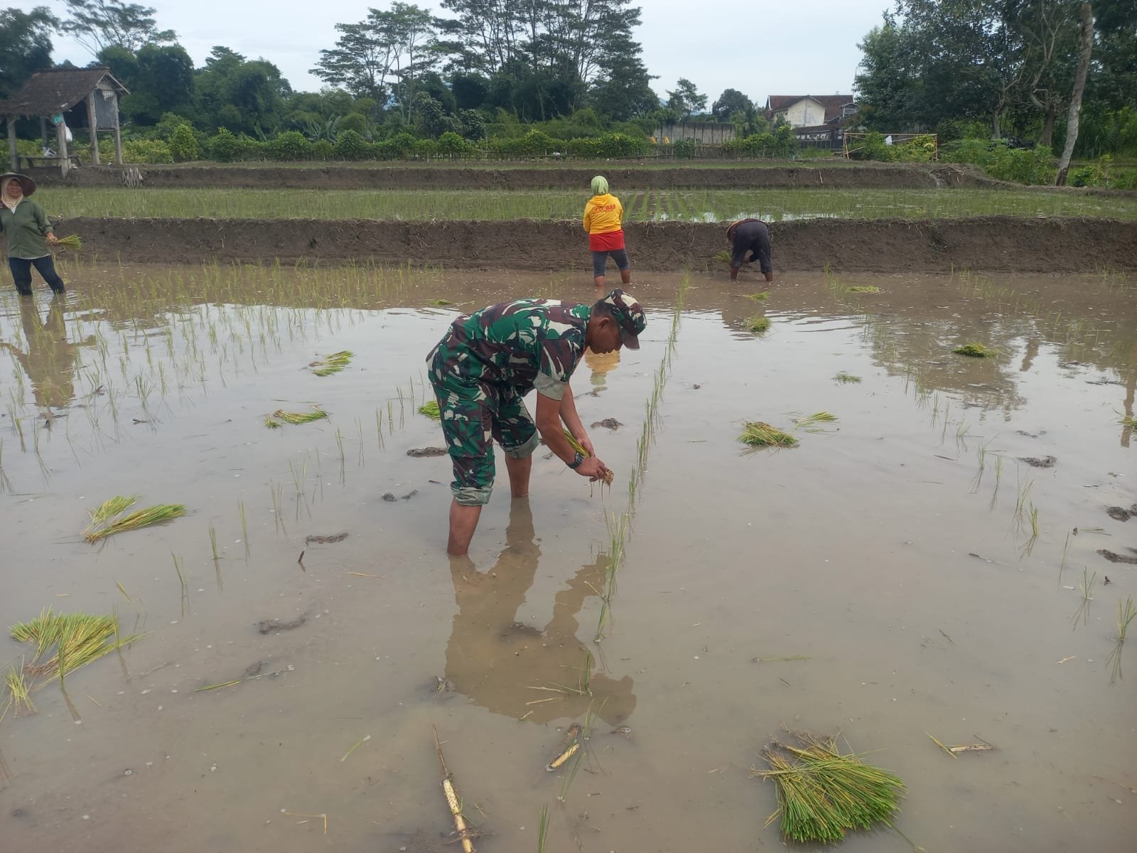Wujud Kepedulian TNI Pada Ketahanan Pangan, Babinsa Kaweron Bantu Petani Tanam Padi