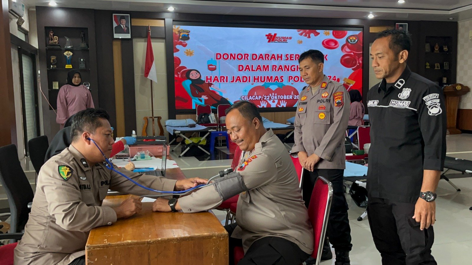 BN News. Cilacap || Polresta Cilacap menggelar kegiatan donor darah yang berlangsung di Aula Patriatama Polresta Cilacap pada Rabu (22/10/2025). Acara donor darah tersebut dilaksanakan dalam rangka memperingati Hari Jadi Humas Polri ke-74 dan dilaksanakan secara serentak di seluruh Indonesia. Kegiatan ini diikuti oleh seluruh personel, polsek jajaran, wartawan, serta masyarakat umum.