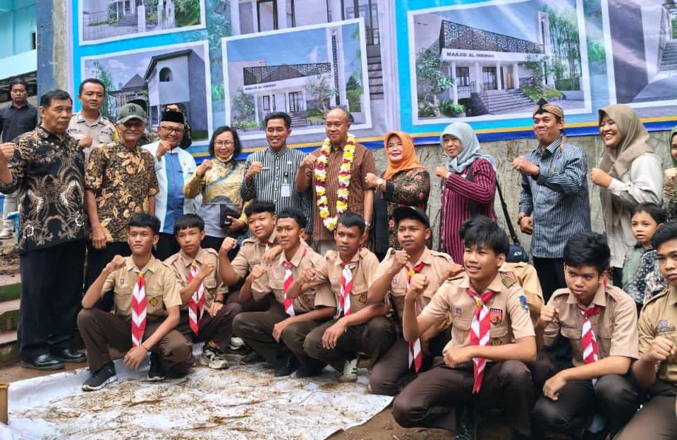 BN News. Banyumas || Gema doa dan haru menyelimuti halaman SMK TI Bina Citra Informatika (BINTRA) Purwokerto, saat Bupati Banyumas Sadewo Tri Lastiono memimpin prosesi peletakan batu pertama pembangunan Masjid Al-Hikmah., Kamis (23/10/2025),