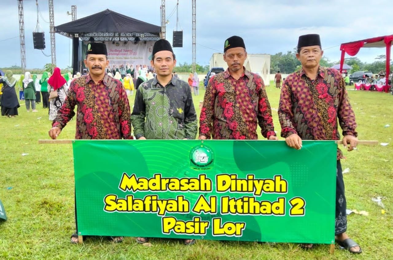 Di antara lautan santri yang berseragam putih bersih, tampak keluarga besar Madrasah Al Ittihaad 2 Pasir Lor, terdiri atas pengurus, kepala madrasah, guru, staf tata usaha, serta ratusan santri, hadir dengan penuh semangat dan kekompakan.