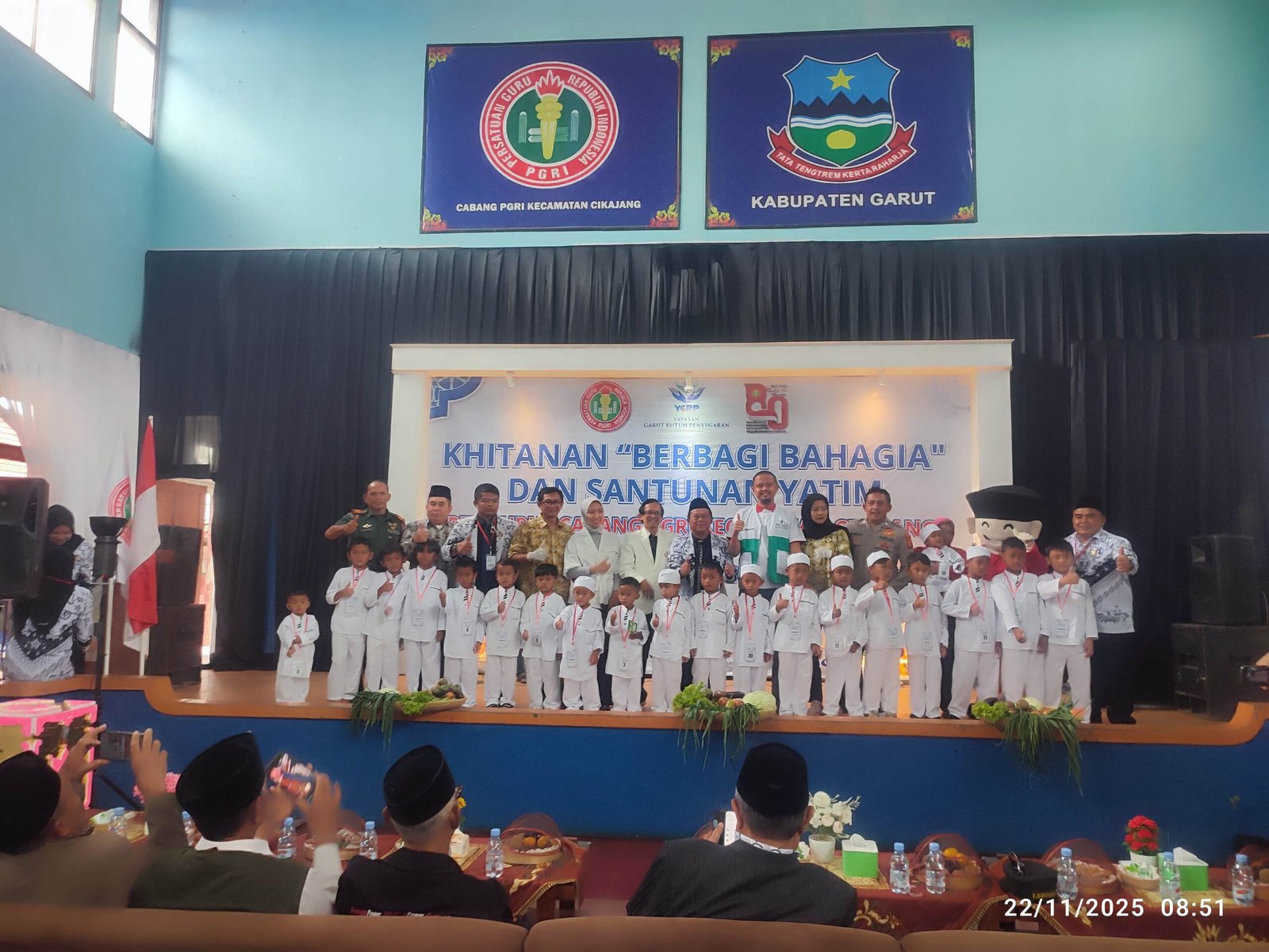 Kegiatan Khitanan Berbagi Bahagia merupakan bagian dari rangkaian peringatan HUT PGRI ke-80 dan HGN 2025 tingkat Kecamatan Cikajang, berdasarkan hasil rapat koordinasi pengurus cabang dan ketua ranting se-Kecamatan Cikajang pada 31 Oktober 2025.