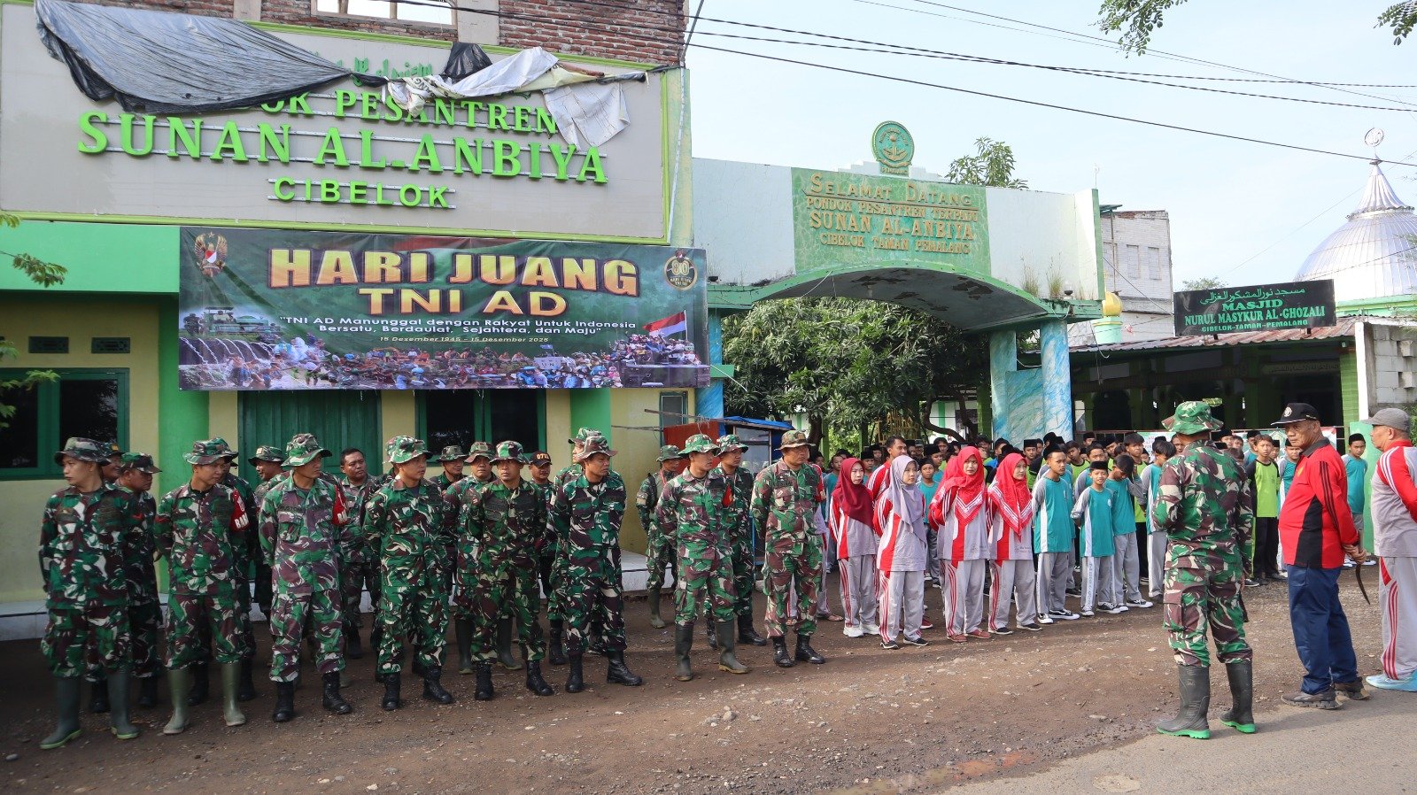 BN News. Pemalang || Dalam rangka memperingati Hari Juang TNI Angkatan Darat Tahun 2025, Kodim 0711/Pemalang melaksanakan kegiatan Karya Bakti yang dipusatkan di Pondok Pesantren Sunan Al Anbiya, Jl. Ternate, Cibelok, Kecamatan Taman, Kabupaten Pemalang, pada Jumat (12/12/2025).