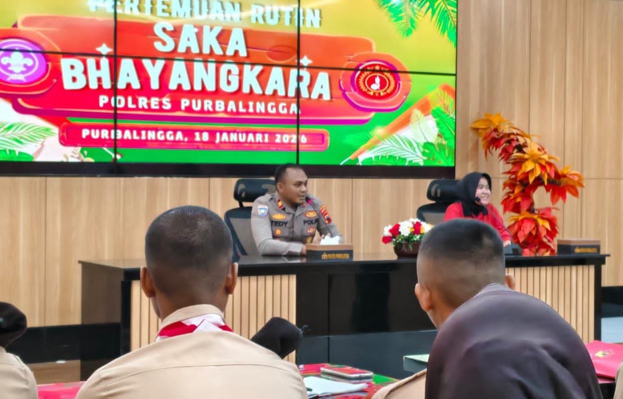 BN News. Purbalingga || Satuan Pembinaan Masyarakat (Satbinmas) Polres Purbalingga menggelar pertemuan rutin anggota Saka Bhayangkara di Aula Wicaksana Leghawa, Minggu (18/1/2026).