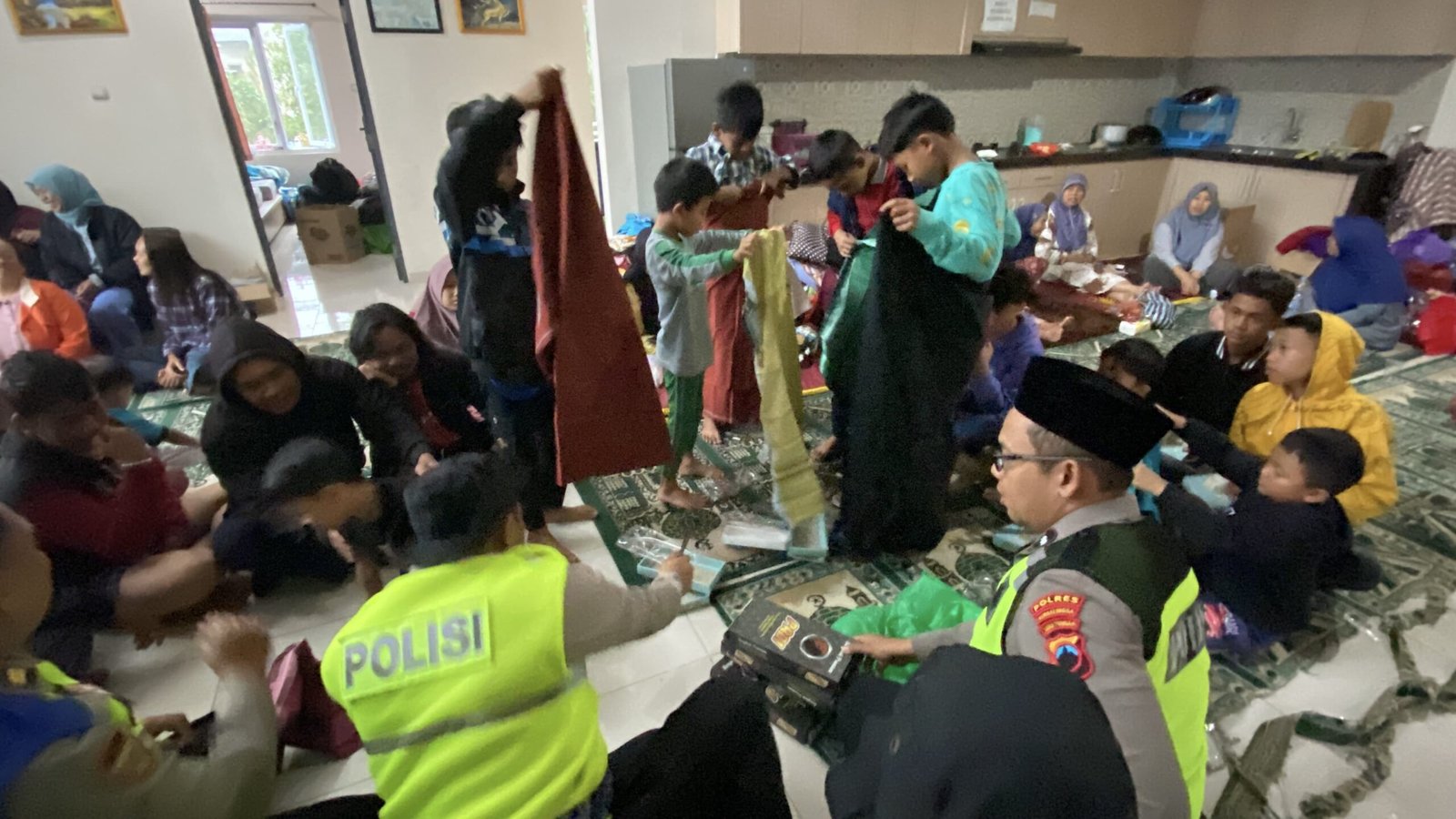 Salah satu anak bernama Aldi mengaku senang mendapat sarung dan kopiah dari polisi. Menurutnya walaupun di pengungsian, ia tetap bisa mengaji bersama polisi.