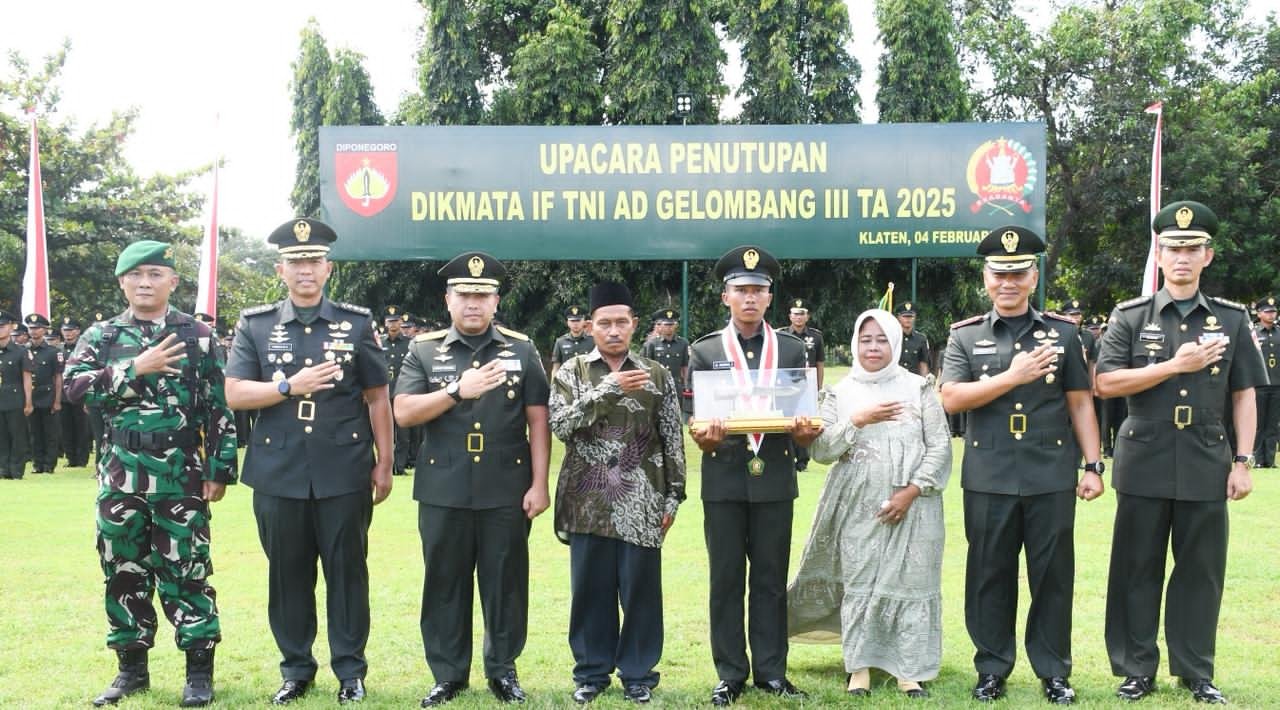 BN News. Klaten || Pendidikan Pertama Tamtama (Dikmata) Infanteri TNI Angkatan Darat Gelombang III Tahun Anggaran 2025 resmi ditutup secara serentak di Lapangan Dodiklatpur Klaten dan Secata Rindam IV/Diponegoro, Gombong, Kabupaten Kebumen. Upacara penutupan di Klaten dipimpin Kasdam IV/Diponegoro Brigjen TNI M. Andhy Kusuma, S.Sos., M.M., M.Han., CFrA., sementara di Gombong dipimpin Danrindam IV/Diponegoro Brigjen TNI Hindratno Devidanto, S.E., M.M., M.Han. Rabu (4/2/2026).